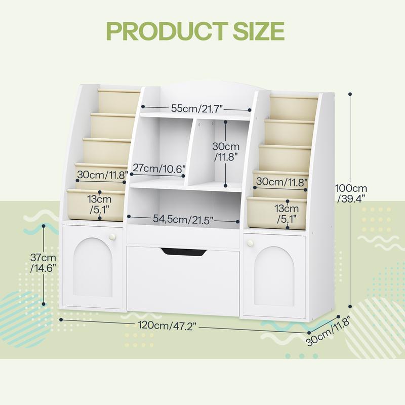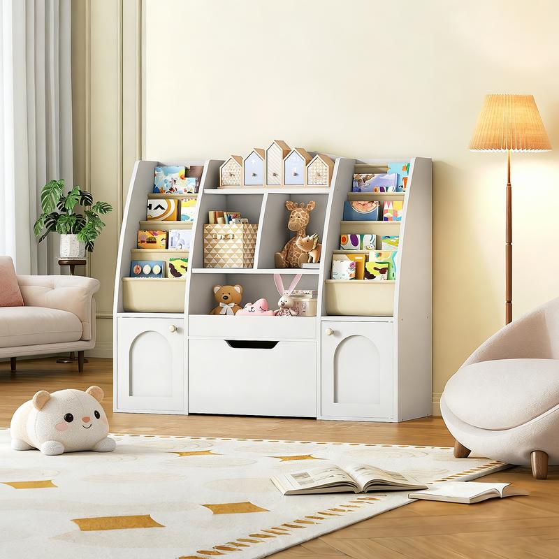·Multifunctional Design: This children's storage cabinet features a versatile design that seamlessly fits into reading corners, kids' rooms, playrooms, and entryways. It provides ample storage space, serving as both a bookshelf and toy organizer, effortlessly complementing any home decor