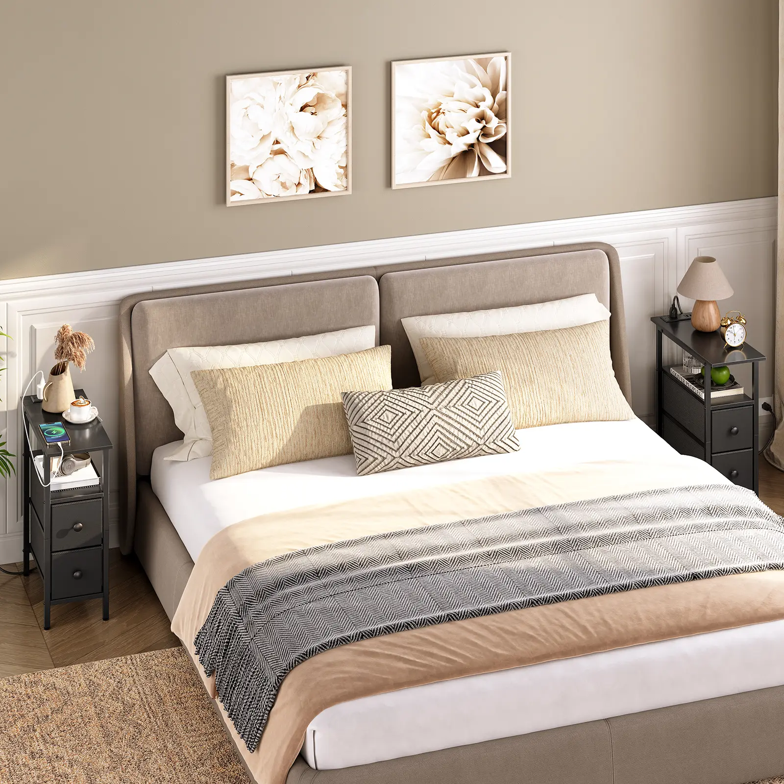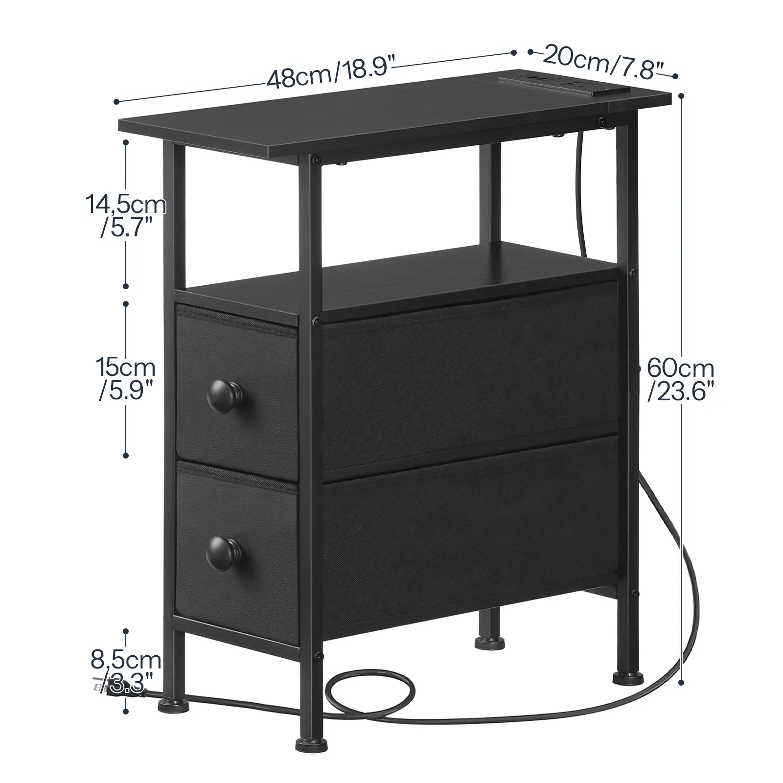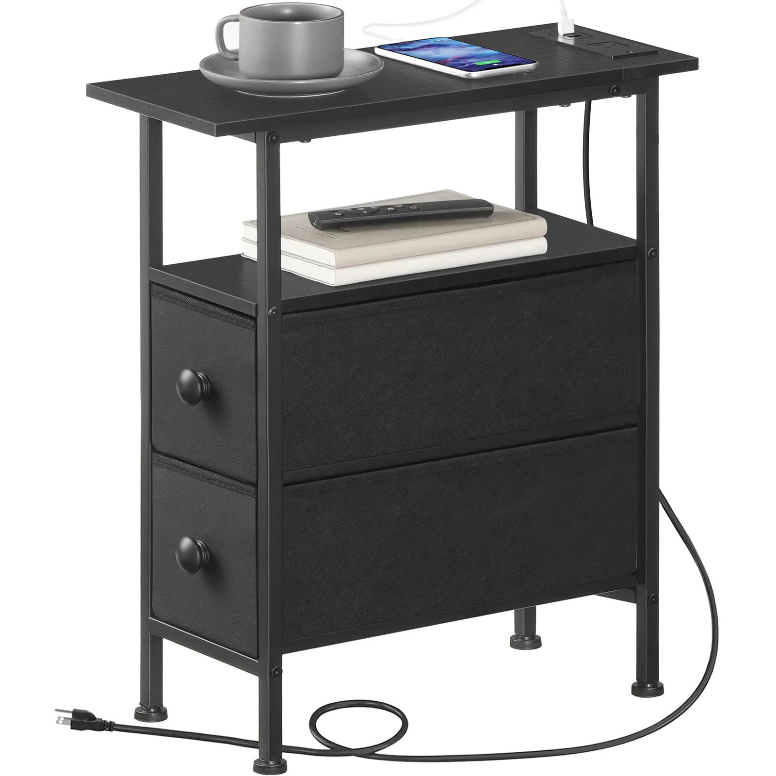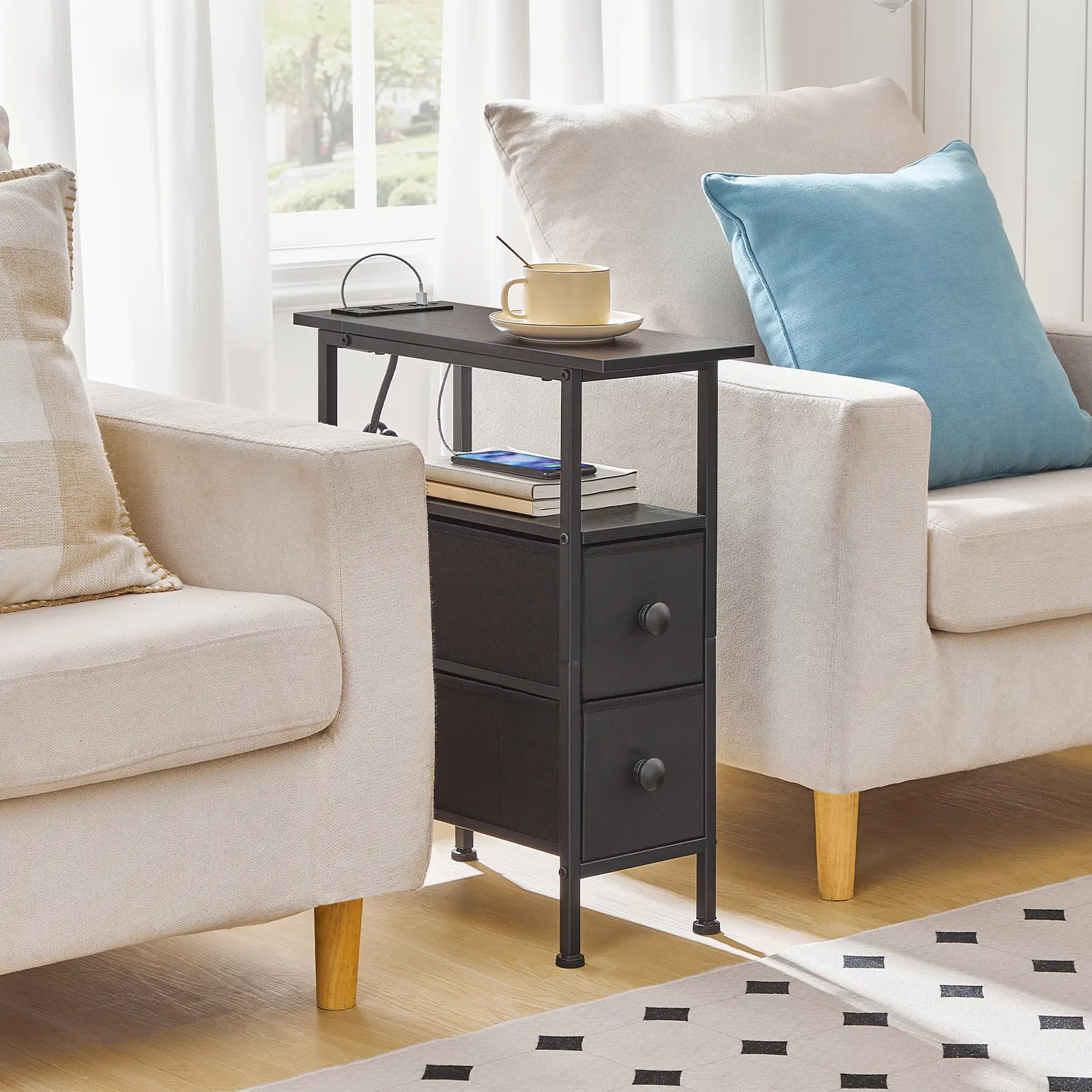 ·One-Stop Charging Solution: Equipped with 1 AC outlet and 2 USB ports, this skinny end table keeps your phone, tablet, and laptop charged up with hassle-free, on-the-go convenience, enhancing your daily life with ease