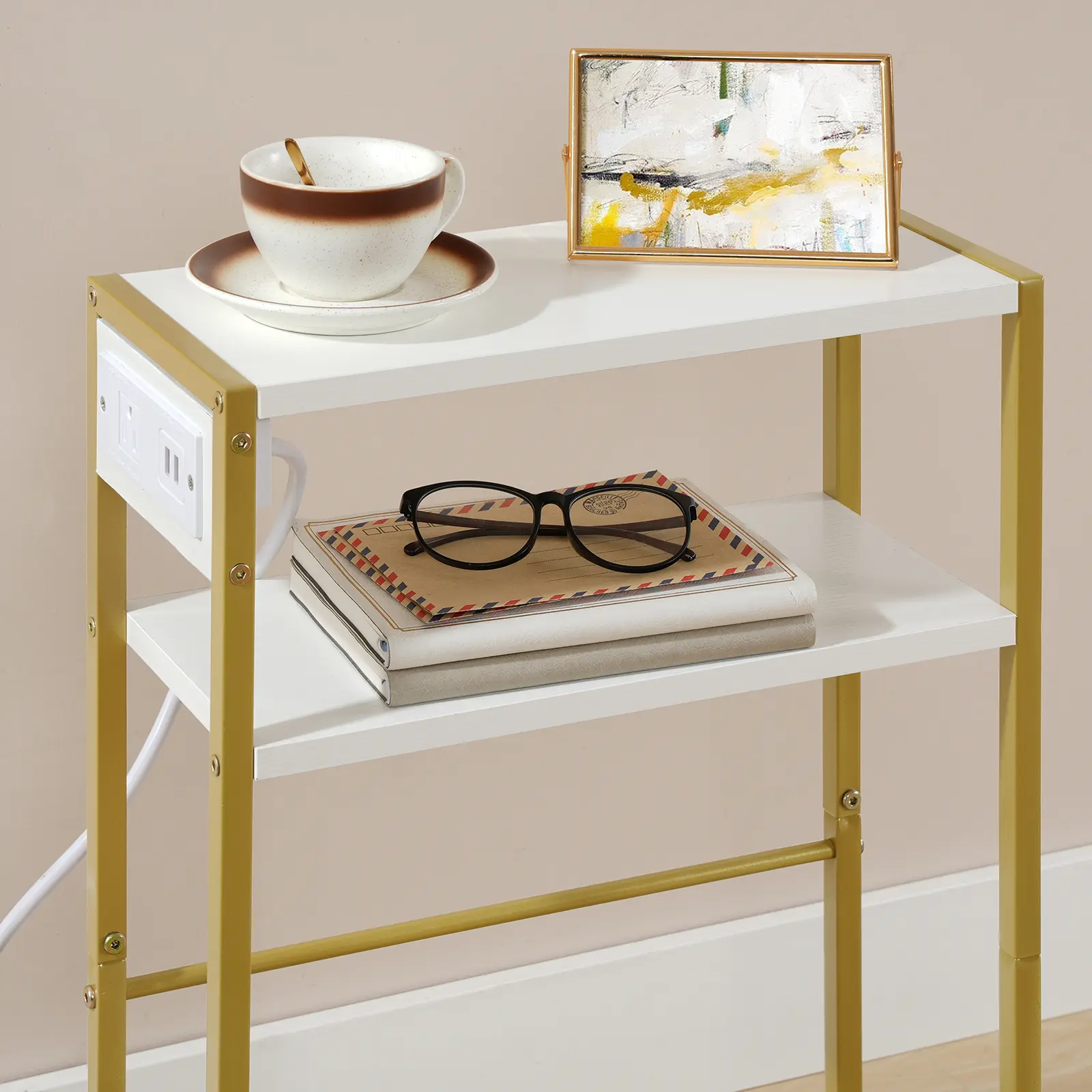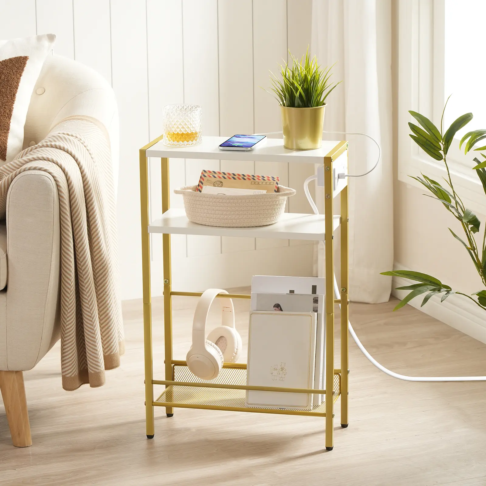 ·White and Gold Finish: Adds elegance to any room.