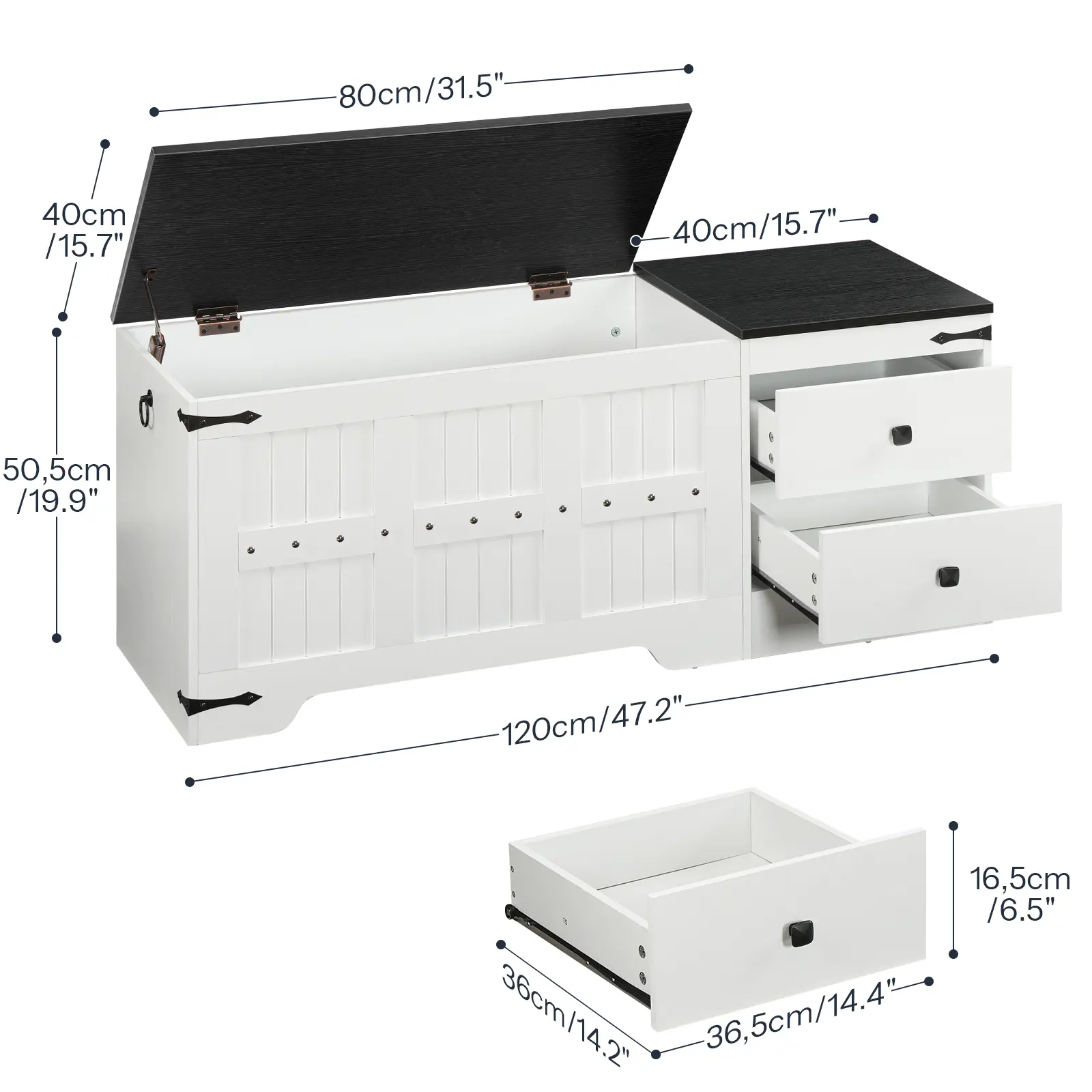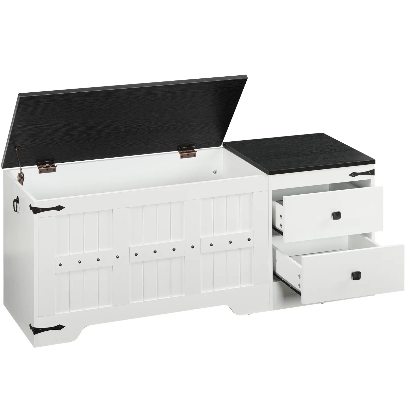 ·Safety Hinge Protection: Equipped with a safety hinge, the storage bench allows the lid to stay at various angles during opening and closing, preventing sudden drops during accessing stored items, and providing peace of mind for family use