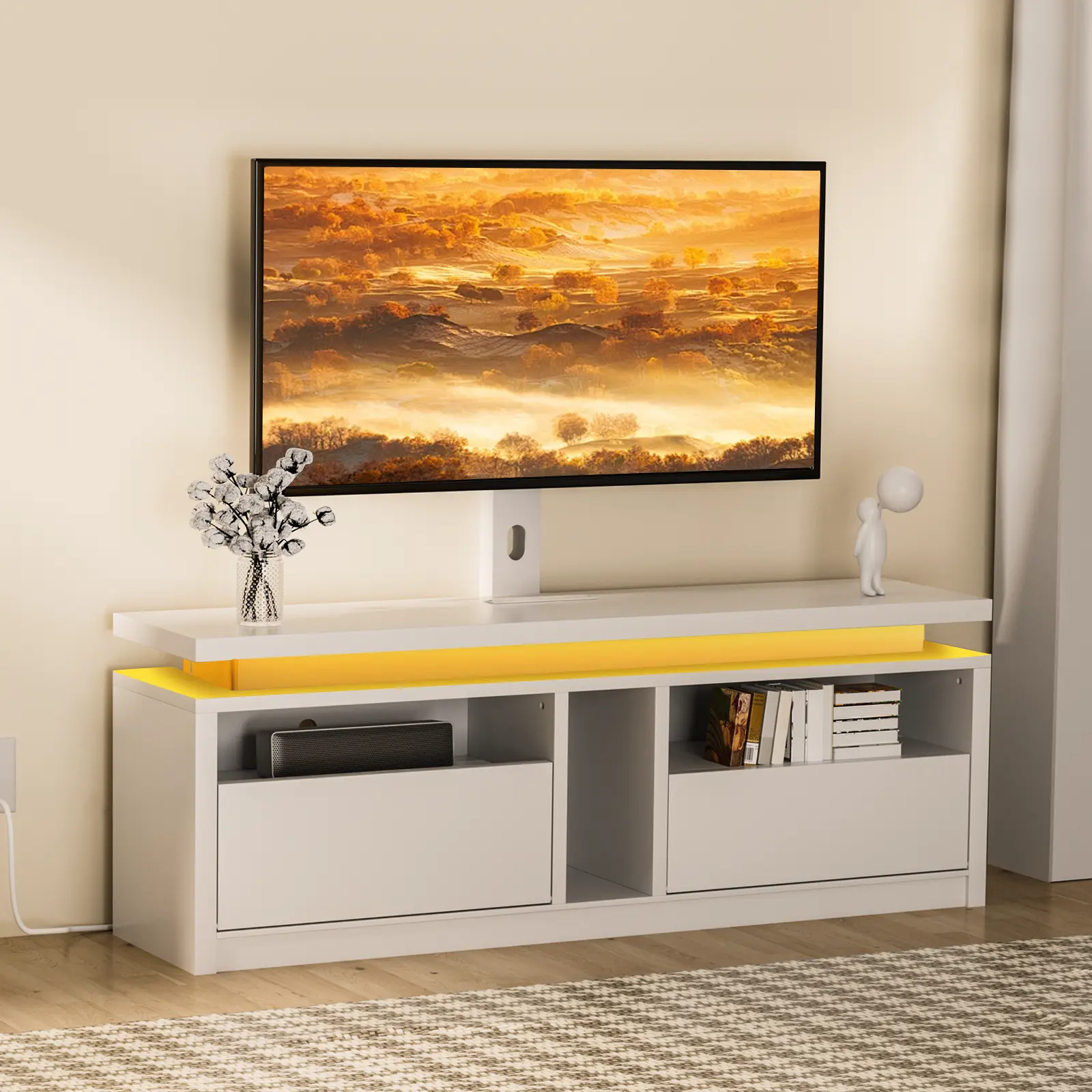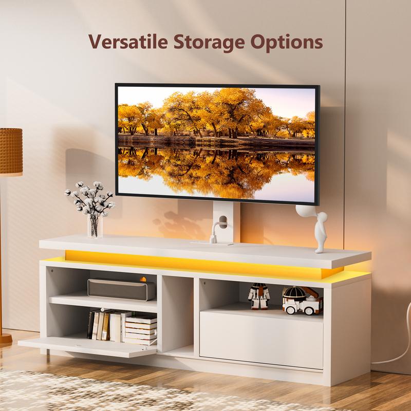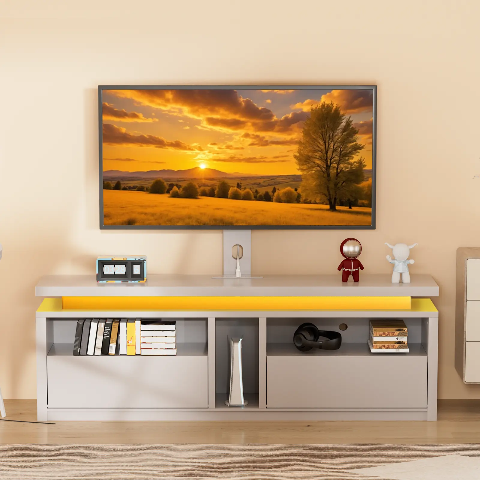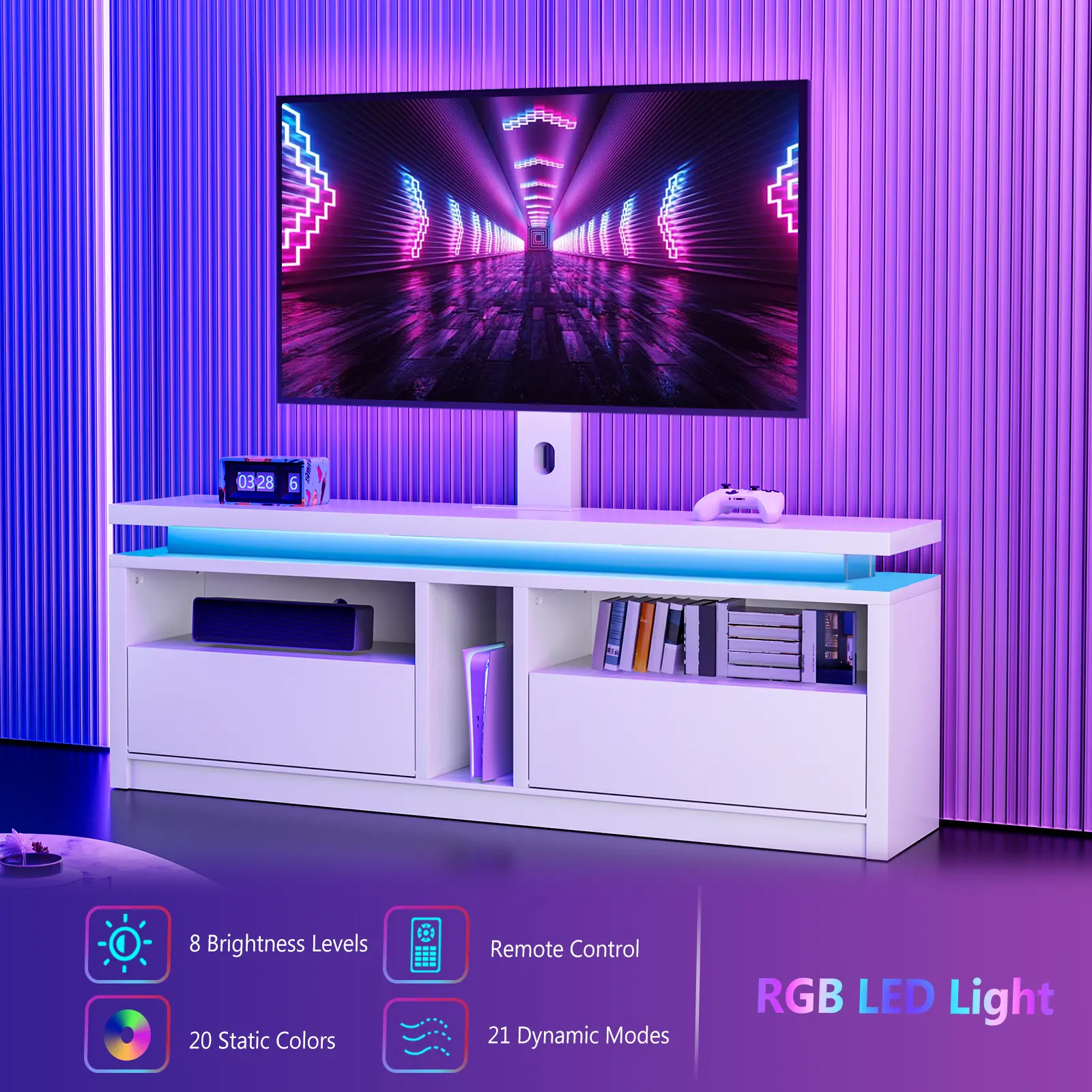 ·Modern Style Design: Elevate your living space with the sleek, contemporary TV media console. The integrated LED light features 20 color options, 21 dynamic modes, and 8 brightness levels, creating an immersive gaming and viewing experience