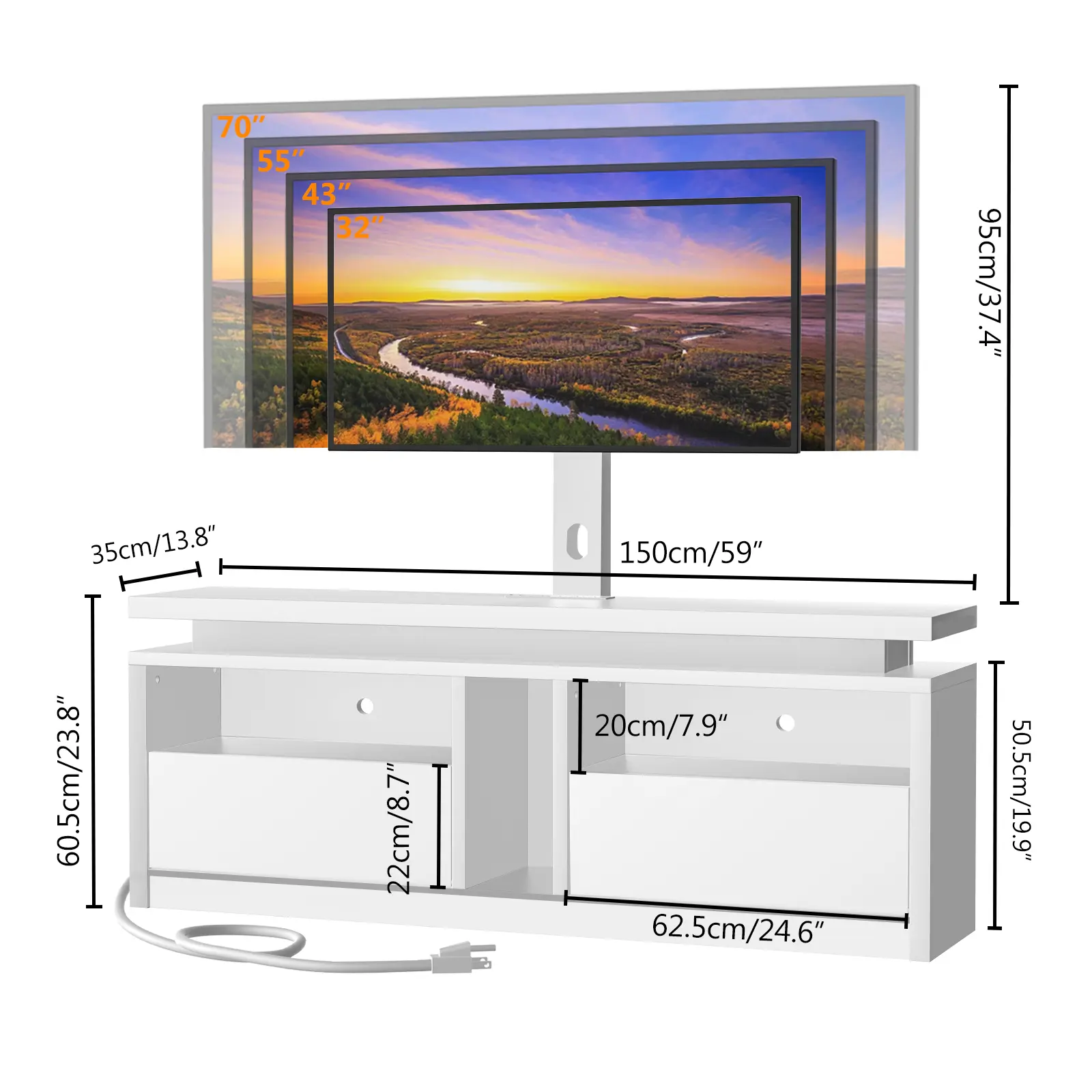 ·Adjustable TV Stand: This TV stand with mount offers 2 height adjustment options with '' vertical adjustment and 34° left and right swivel, ensuring optimal viewing angles for TVs up to 75 inches and a maximum weight capacity of 110 lb