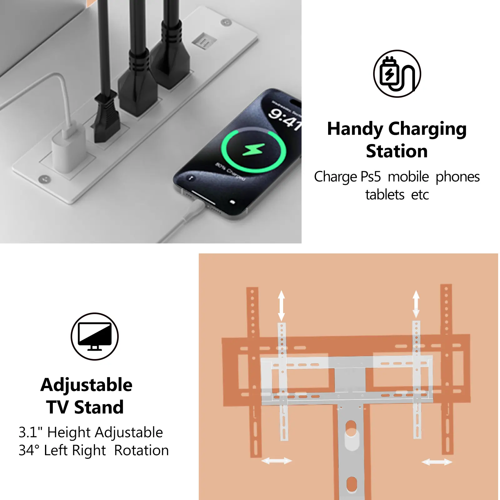 ·Practical Charging Station: Equipped with 4 AC outlets and 2 USB ports, this entertainment center offers easy charging for your smartphones, tablets, gaming devices, and other electronic gadgets, while its cable management holes keep wires neat and tangle-free