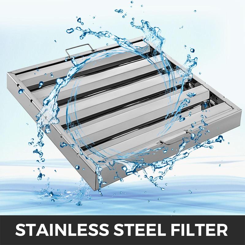 • 【EFFICIENT PERFORMANCE】- These high-quality stainless steel baffles with 4 collection troughs, will cause the air to change direction and collect to form grease, and then enter the drain. Provide 100% flame shield for preventing extreme fires from entering the exhaust hood, roofing pipes, etc.