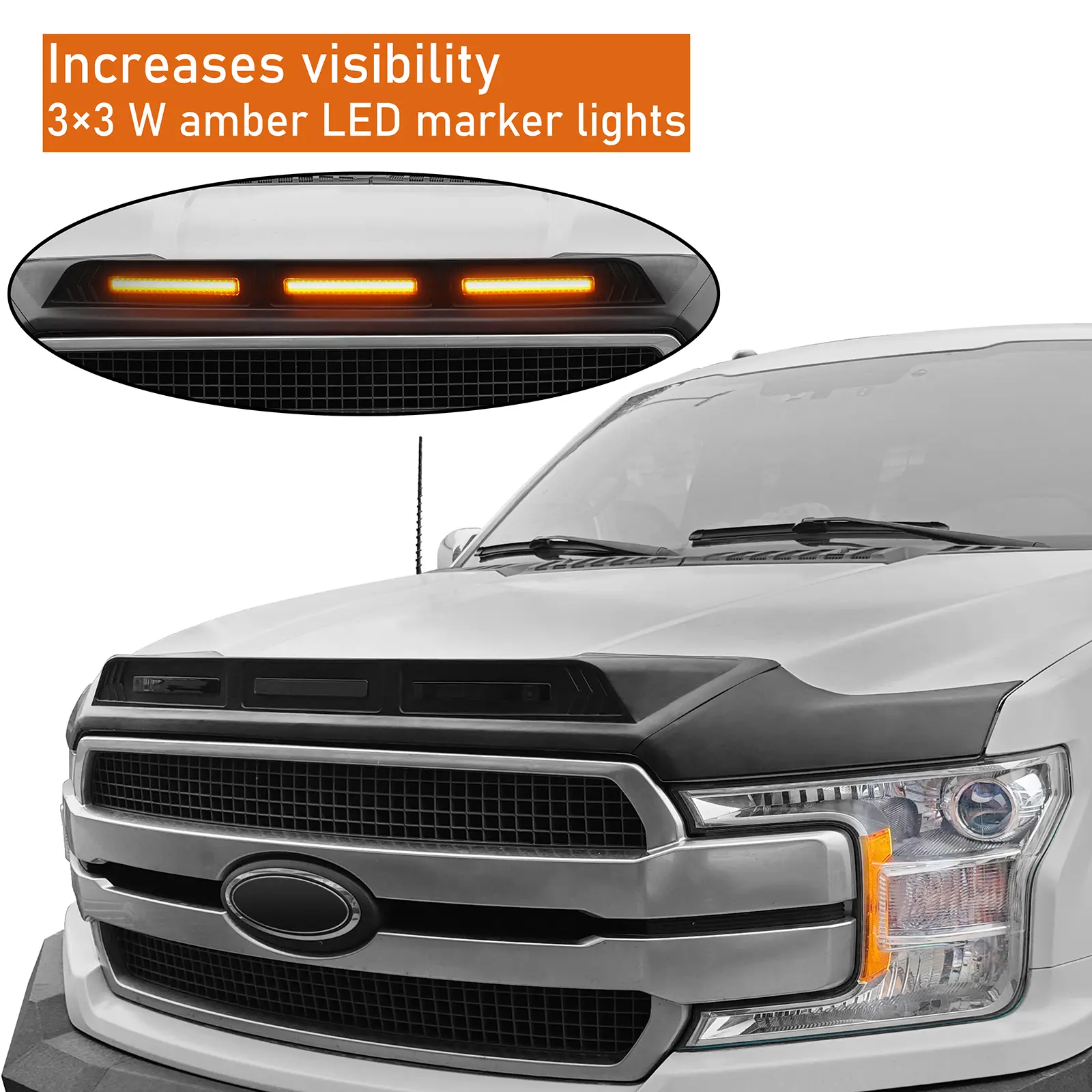 ·A distinctive look with 3 amber LED marker lights. Increases visibility to oncoming drivers