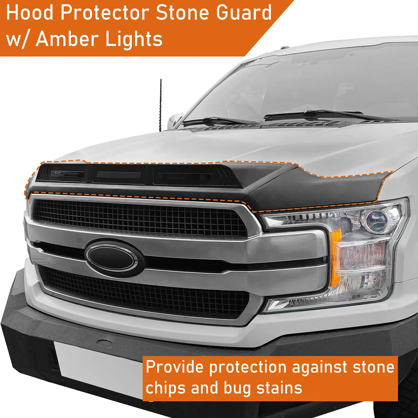 Name: Hood Protector Stone Guard w/ Amber Lights