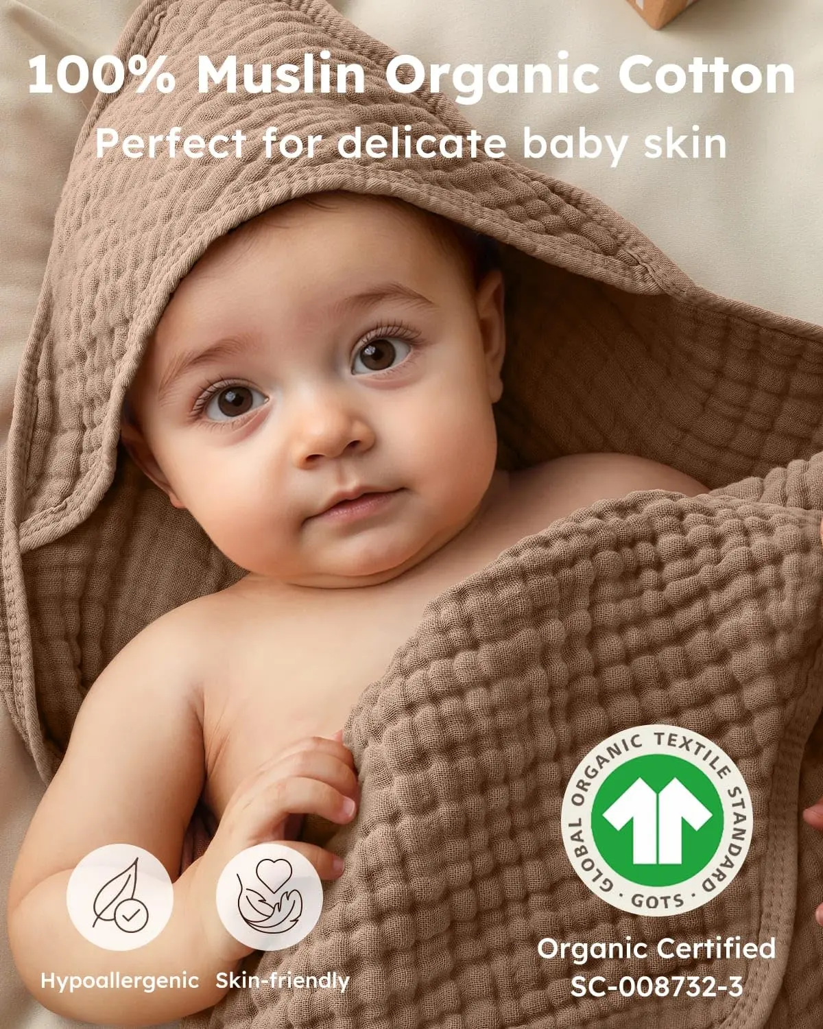 Introducing the Yoofoss Hooded Baby Towels, a must-have for your baby's care needs. These towels are crafted from 100% muslin cotton, ensuring a soft and comfortable feel for your little one.
