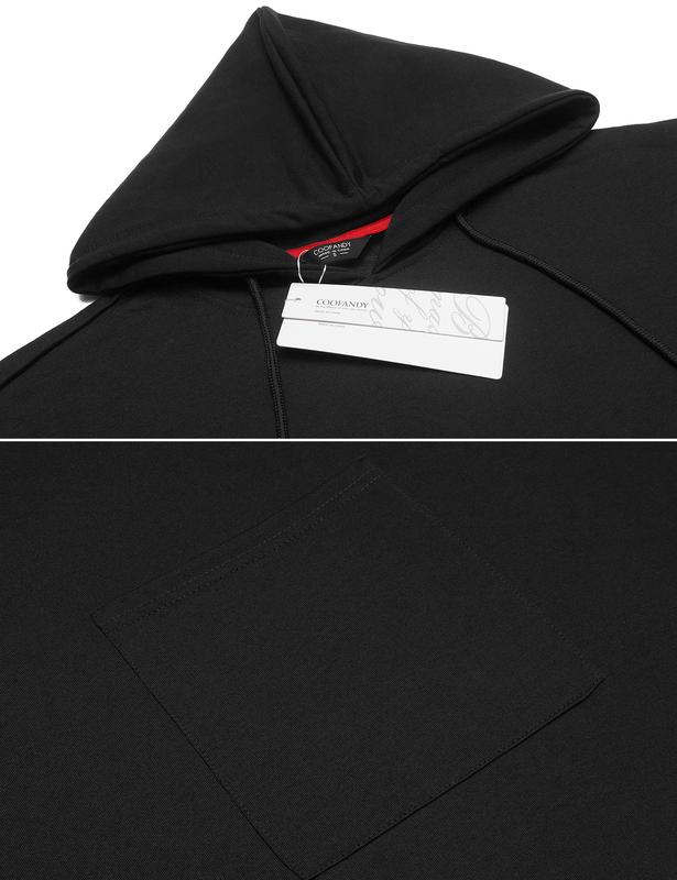 ·【Unique Design】Unisex hooded cloak designs in ssolid color, simple style, long sleeves with two front pockets, irregular hem, adjustable drawstring hoodie pullover.