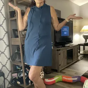 This is just the perfect T-shirt dress with a hoodie. However, it runs a size smaller than usual for my fit. I’ll be ordering another one.