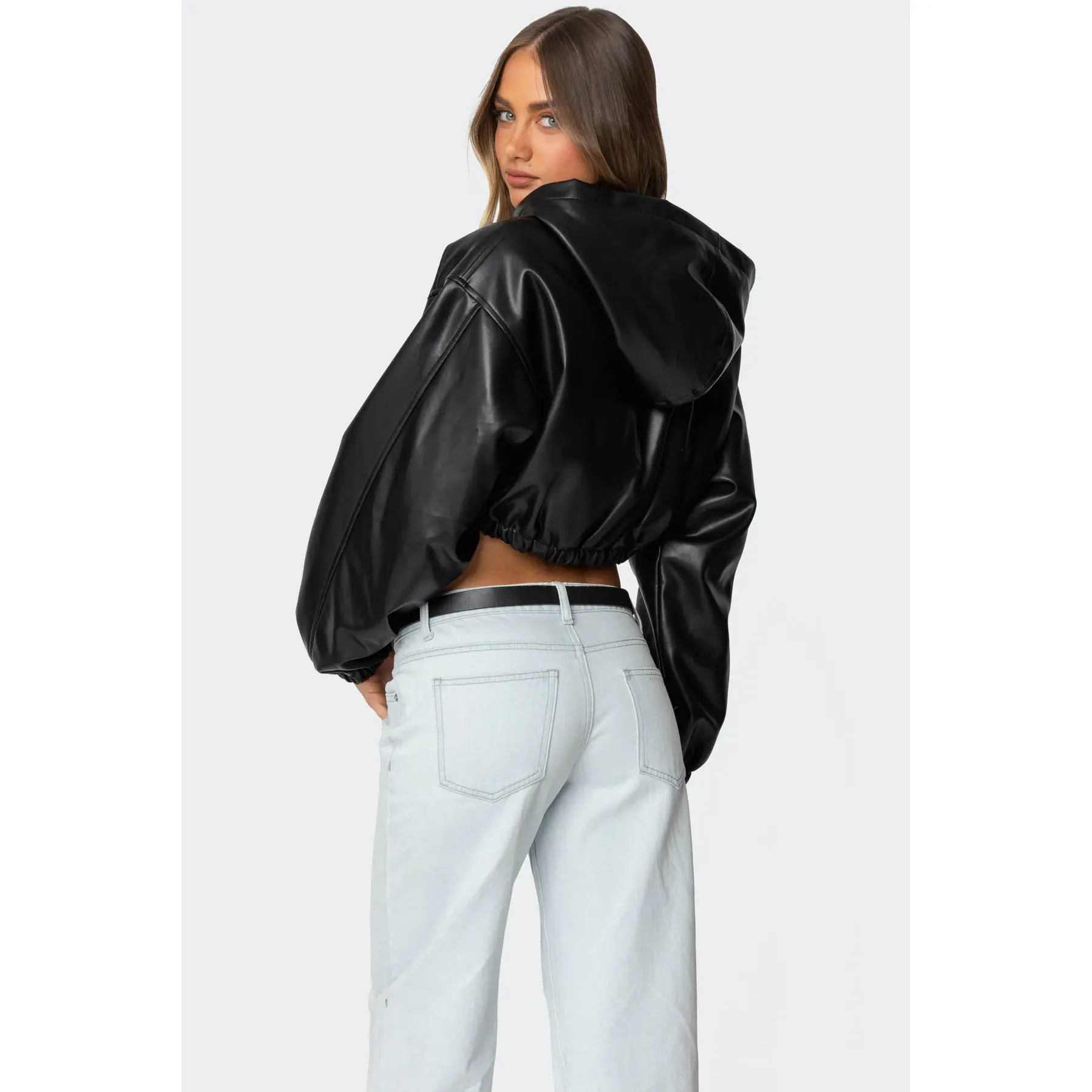 Switched it up a notch 😜.. it was the jacket had me feeling some type of way — jacket 🔗 above ;size medium #bomberleatherjacket #leatherjacket #hoodedleatherjacket #tiktokcreatorpicks