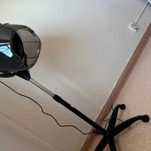 Swivel hood with conveint hinged hood door,adjustable front visor and large adjustable bonnet accommodates even the largest rollers.Portable design with wheels for quickly & easily moving. Height adjustable knob with spring, could be used in work place or at home, it's more convenient than hairdryer.Dual-looped rustless steel heating element w/multi-bladed fan. Temperature can be adjusted from 0 to 75℃, Timing Function Of 0~60 Minutes.
