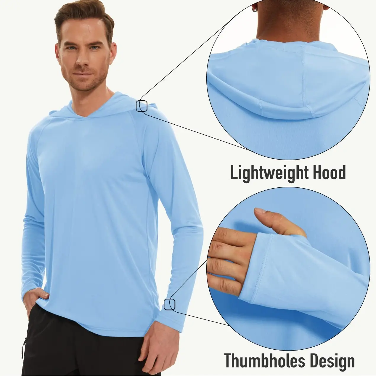 I love the simple style of this hoodie. Nice lines and a neutral color go with any casual outfit. The material is nice and stretchy. I am 510, 200 pounds. I purchased the extra large which fit me perfectly and it was even long enough in the arms. I bought two the first time and was very satisfied.