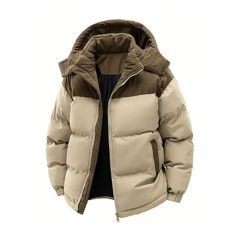 It's a warm jacket and fits well going a size up from normal. It does have a couple spots where the stuffing inside is exposed. The zipper sticks sometimes. Overall a good winter jacket that is warm and not expensive.