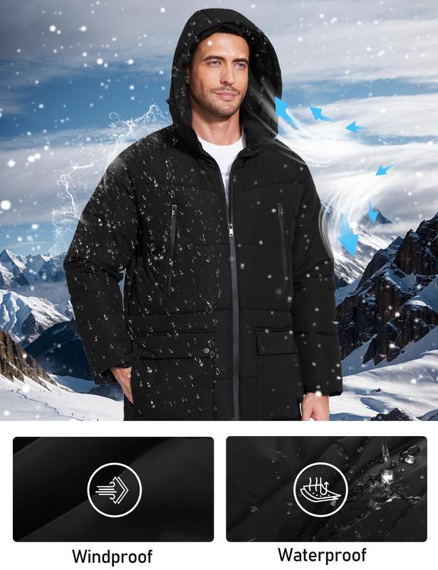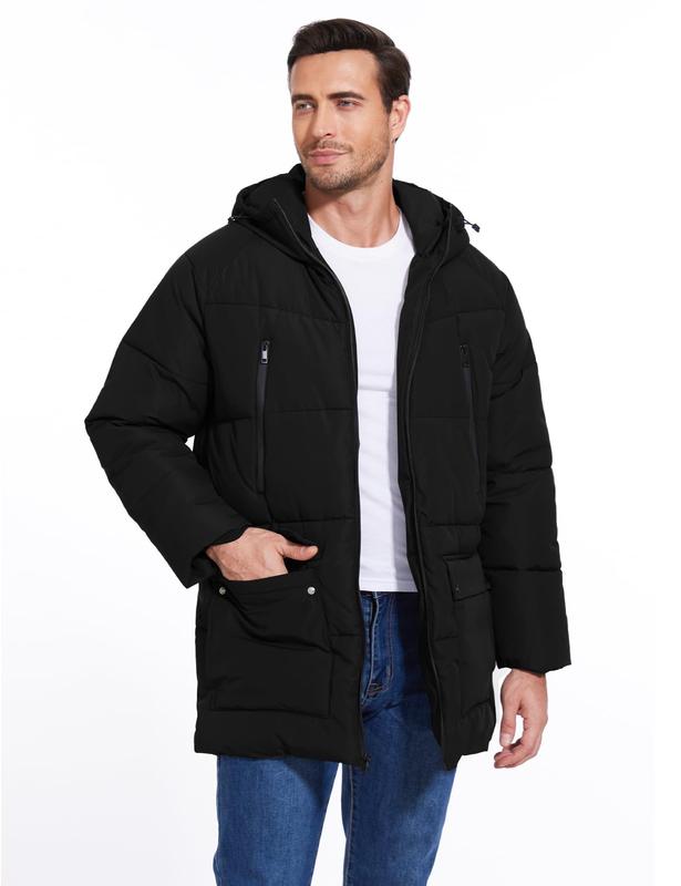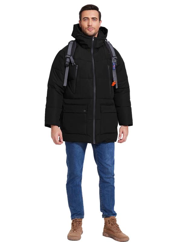 ·Mid-length Coats: Mens winter coat covers the core body, ensuring your entire upper body stays warm. The hood with adjustable drawstring and stand collar design offer extra warmth for your neck and head