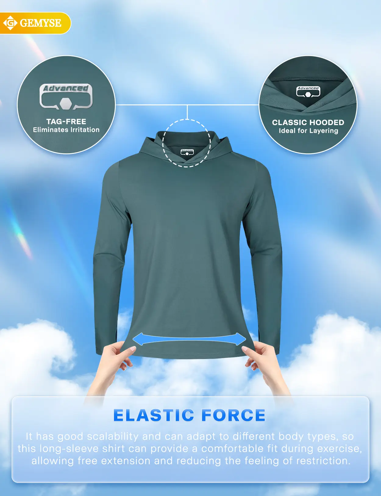Soft & Comfortable: The men’s hooded long-sleeve rash guard shirt is made from soft cotton fabric that feels gentle on your skin, providing all-day comfort. The men’s long-sleeve workout top excellent stretch ensures a snug fit for various body types, allowing unrestricted movement during activities while reducing any sense of tightness.