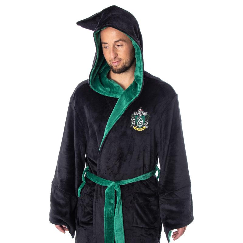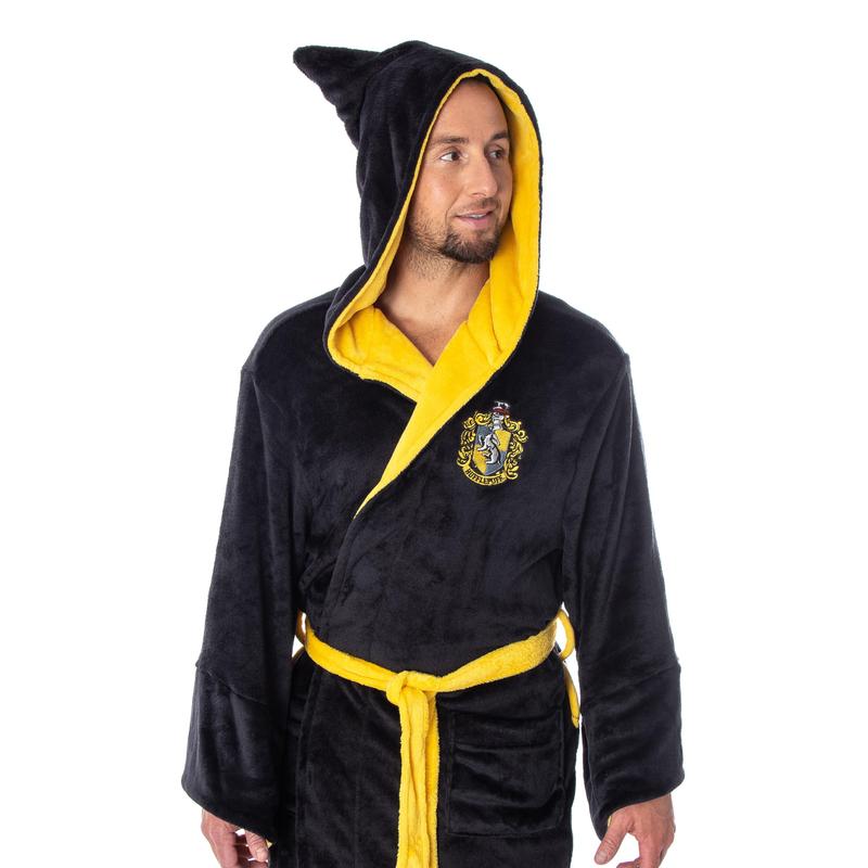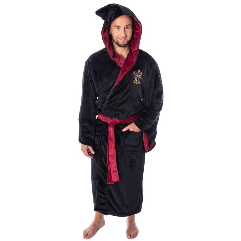 If you’re looking for Harry Potter merchandise, you’ve come to the right place! Intimo specializes in creating children’s apparel that is comfortable, practical, and fun. This Harry Potter adult plush bathrobe is made of soft polyester that will keep you cozy and warm whether you are getting out of the shower or using it as a costume. It comes in one size fits most design that will fit your Harry Potter fan and is designed for Adult men, although it works great for women too! You can choose from 5 different designs - The Hogwarts Castle of Witchcraft and Wizardry Crest, and the four houses Gryffindor, Ravenclaw, Hufflepuff, and Slytherin. Each robe features an embroidered house crest over the left chest, a long hood, and a contrasting color to match the chosen Hogwarts house (Grey for Hogwarts Robe), a tie-belt, and front pockets. Such a stylish robe is sure to go a long way as a gift! Made from top-notch, ultra-soft polyester fleece, it can be worn comfortably during the warm summer out of the swimming pool or bathtub or during the chilly winter. Great for costume robes as well! The long sleeves are loose for comfort and stylish in design. For questions regarding sizing, please refer to the size chart. The model in the photo is 5'10". These are the best! THESE ARE HARRY POTTER ROBES - Intimo specializes in top-notch, men's, women's, and children's sleepwear, underwear and more!. Featuring everything from classic cartoon characters to superheroes, and all the newest, most popular movies, toys, and television characters in between, you count on Intiomo to come through with quality products for you and the one you love! HOGWARTS AND ALL 4 HOUSE DESIGNS AVAILABLE! - We know as Harry Potter fans ourselves that it's a must to rep the house you are sure the Sorting Hat would have put you in! These magnificent, superior quality Harry Potter bathrobes come in all four houses, Gryffindor, Slytherin, Hufflepuff, and Ravenclaw. Love all houses? Then you can get the Hogwarts Castle crest design, or get all 5! LOUNGE IN COMFORT: Soft and practical, this robes design with adults in mind. This Harry Potter bathrobe is super-plush and has an ultrasoft feel that you will not want to take off, ever! The fleece material makes it ideal for cold winter nights, costume parties, cosplay events, as a swimsuit cover, and more! It is the gift for a Birthday, Christmas, or just because you love someone! SIZING- These Harry Potter Robes are a One Size Fits Most adult men's but are great for women as well! The model in the photo is 5'10". Make sure to look at the size chart provided for detailed specs.