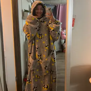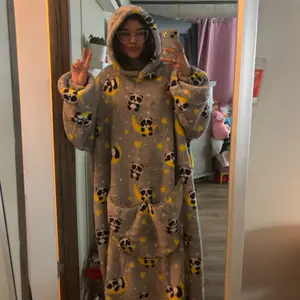 This is so comfy it really is like a blanket it wraps you up and makes you feels cozy. Super soft and it has elastic wrist so it doesn’t cover your hands