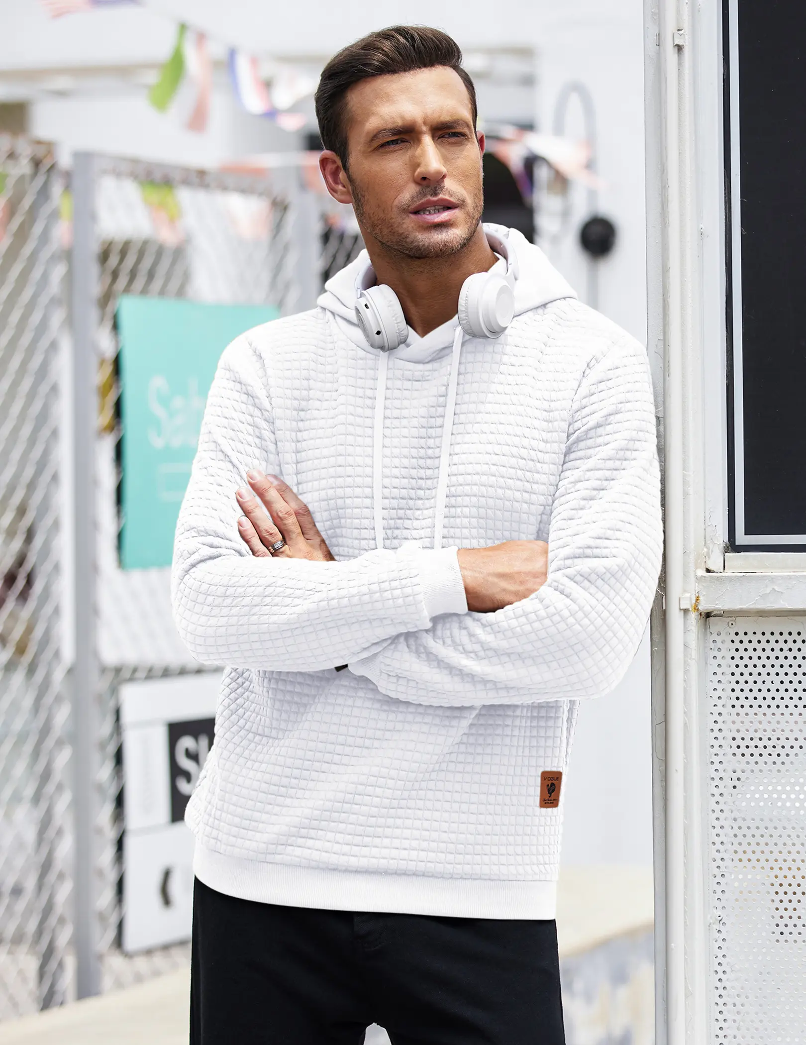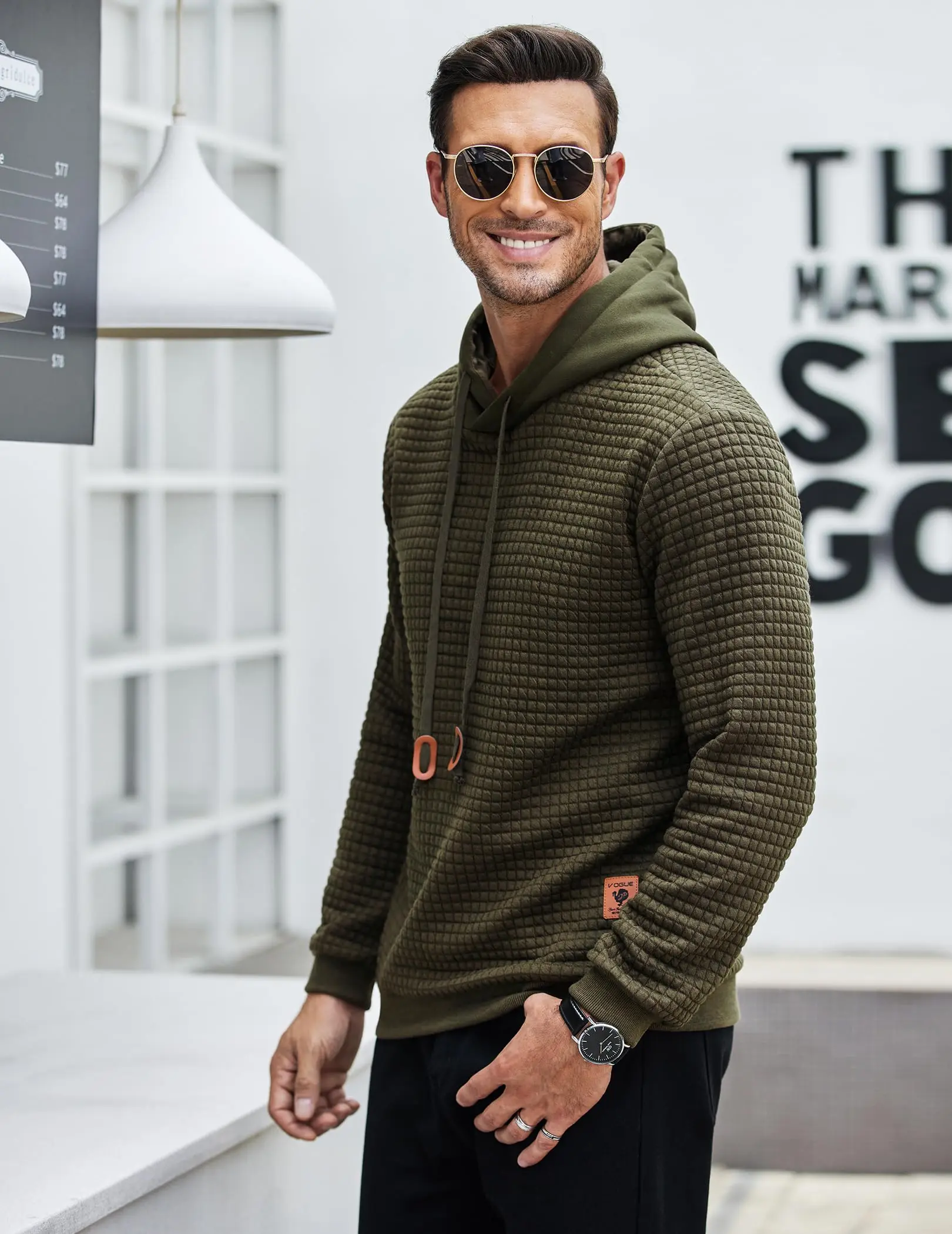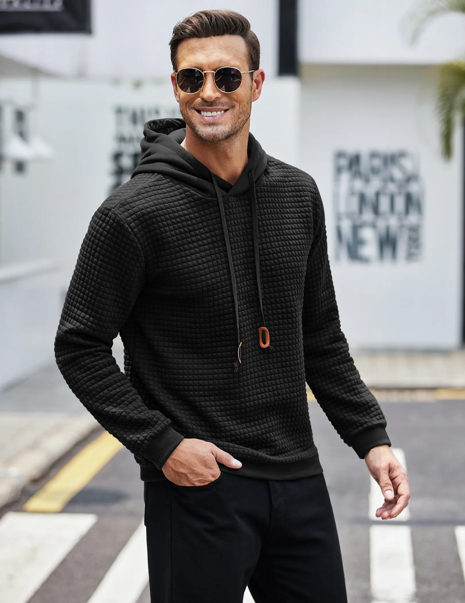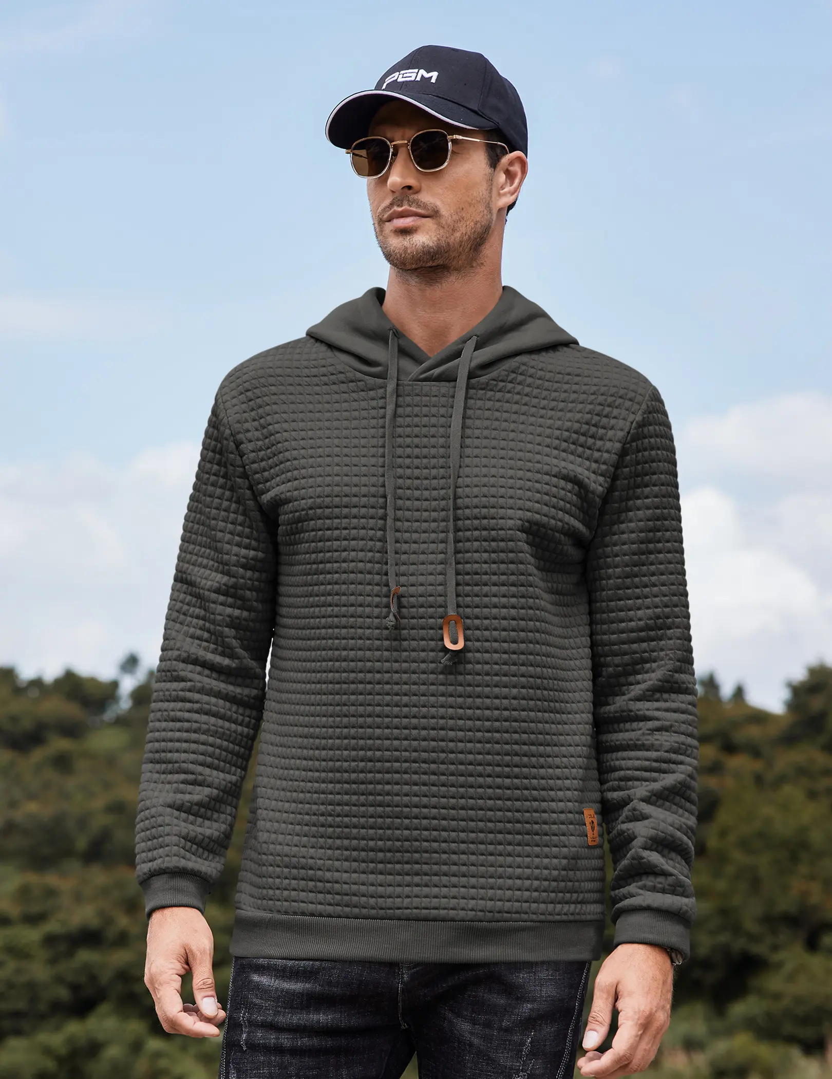 ·【Stylish Design】:Mens hoodie sweatshirt designed in waffle pattern, solid color, long sleeves,elastic ribbed cuffs,pullover hooded with adjustable drawstring, simple and stylish.