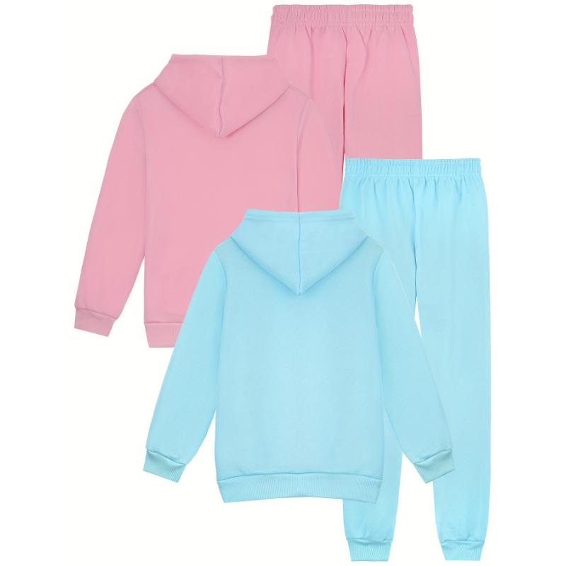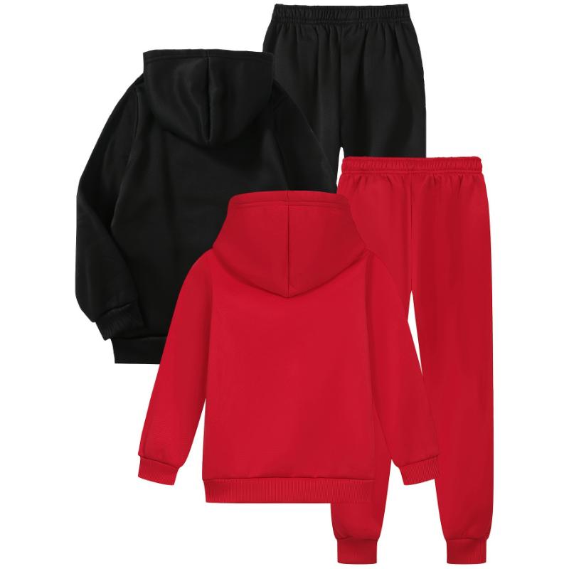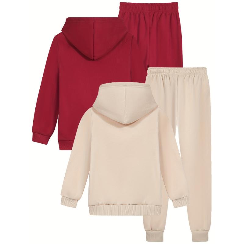 Casual Hooded Sweatsuit Set - 2 Pack Polyester Solid Color Sportswear with Pockets, Slight Stretch, Regular Fit Fall/Winter Apparel Over 3 Years Old - Comfortable Knit Jogger and Sweatshirt Combo, Outdoor