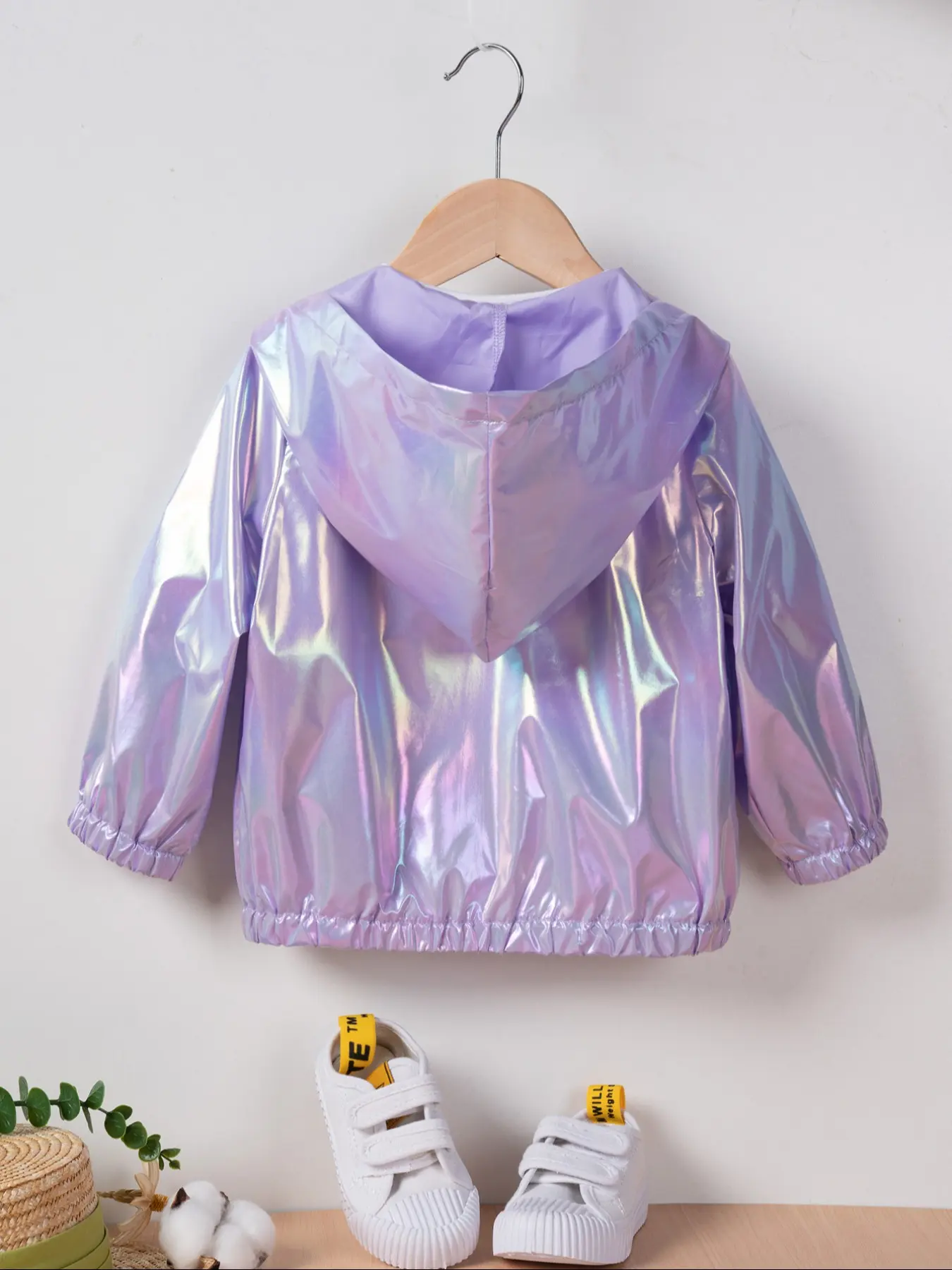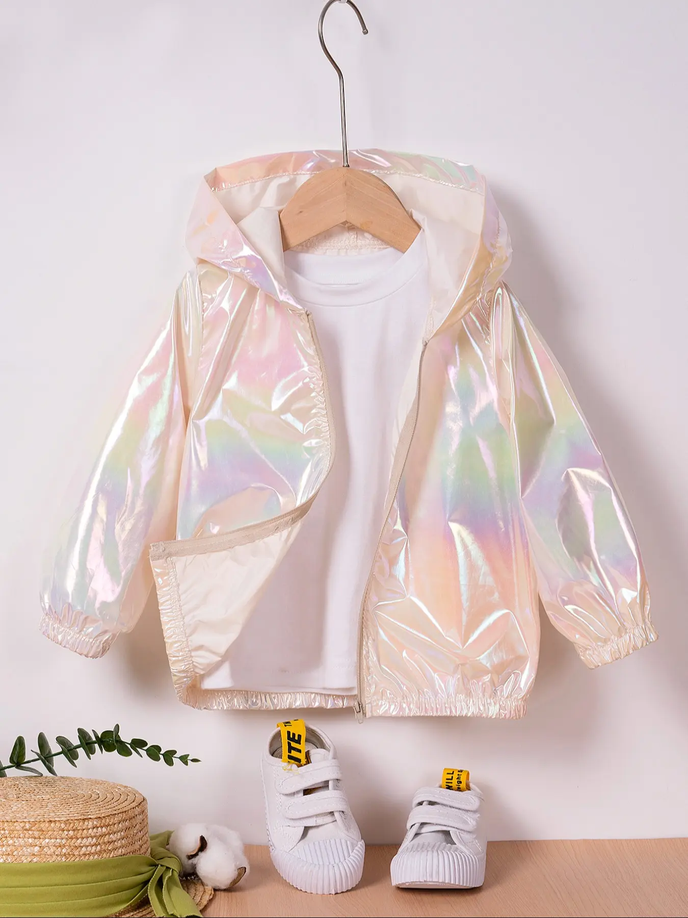 Toddler Girl's Thin Glitter Zip Up Hooded Jacket without Tee, Fashion Long Sleeve Zipper Outerwear for Spring & Fall, Kid's Clothes for Daily Wear, Casual Comfy Jacket