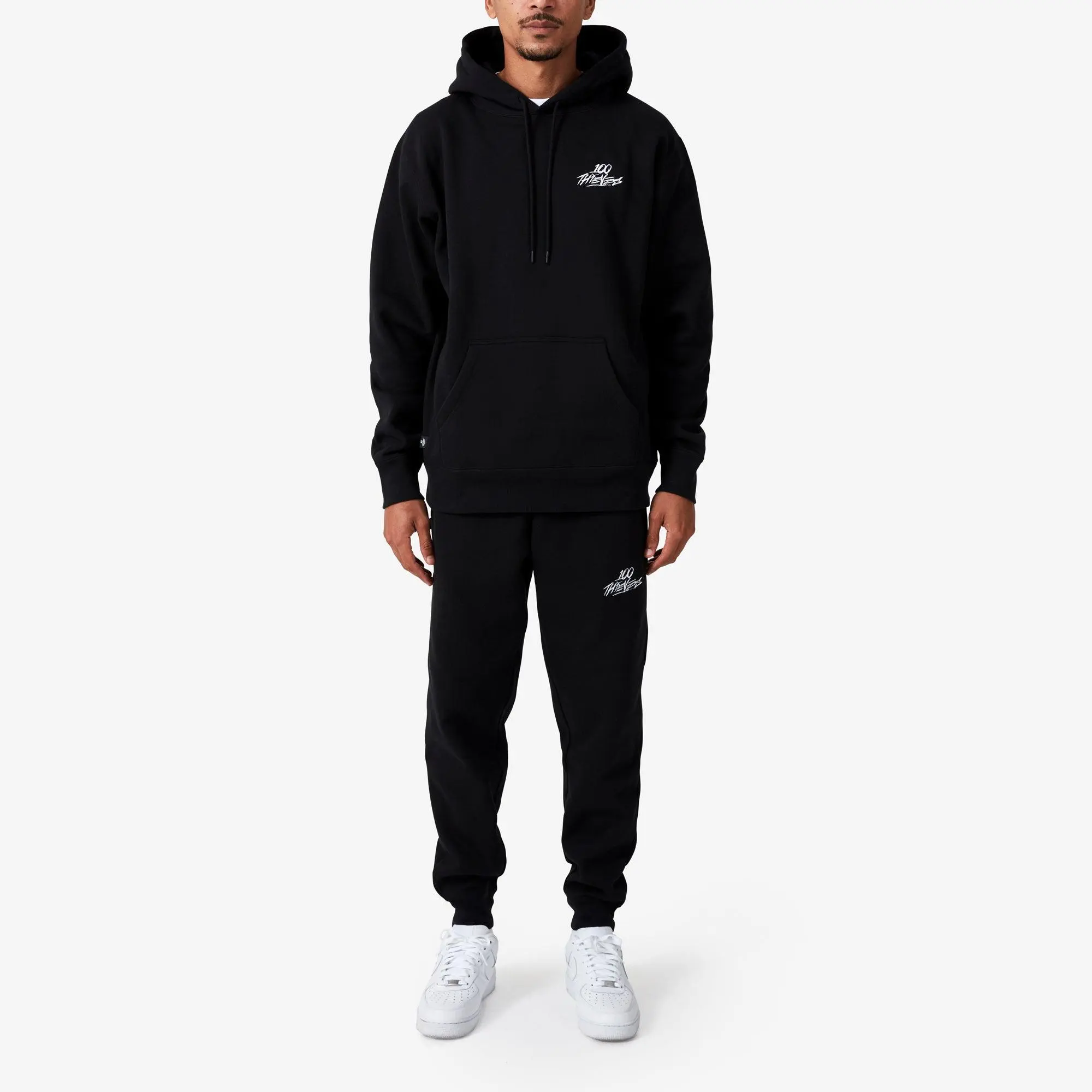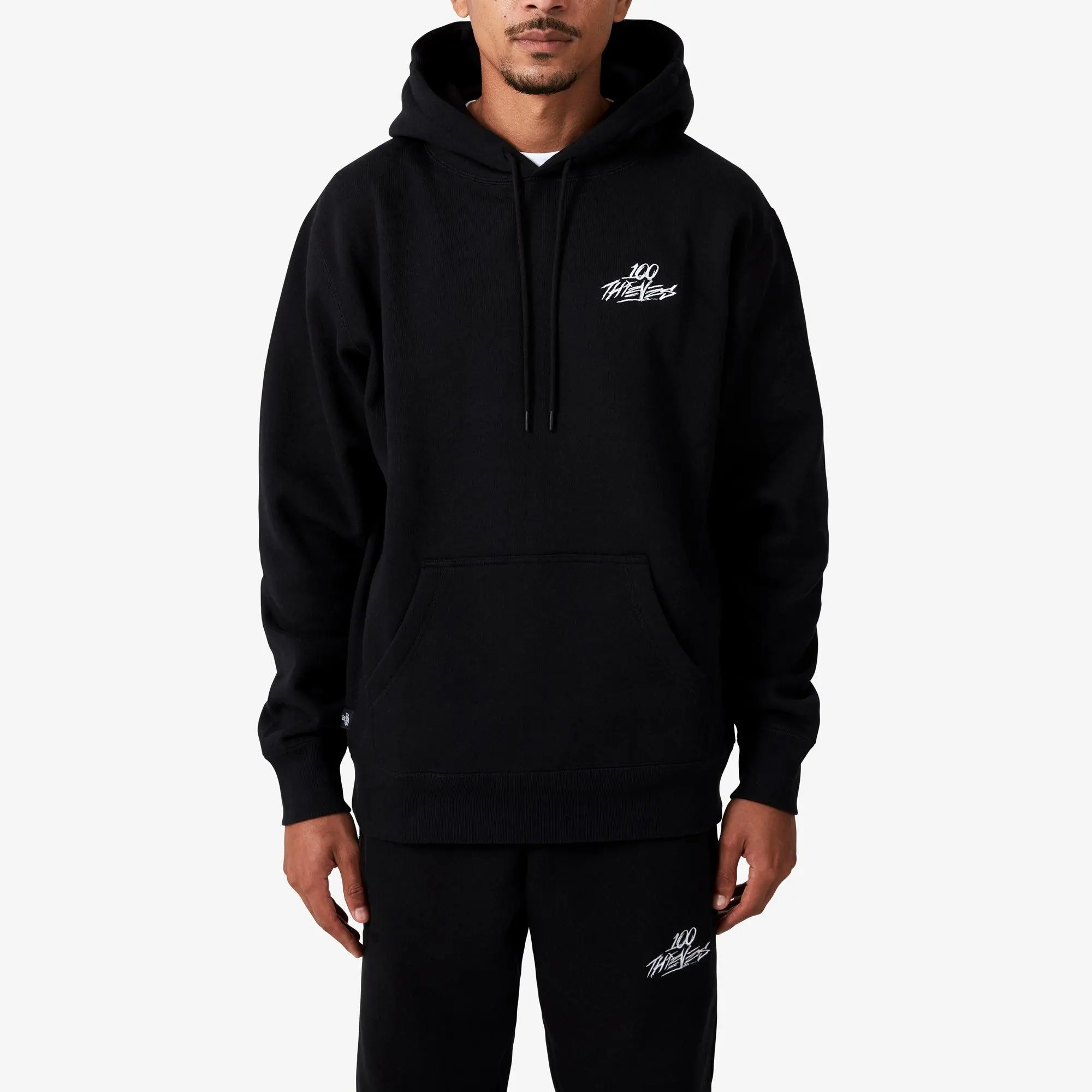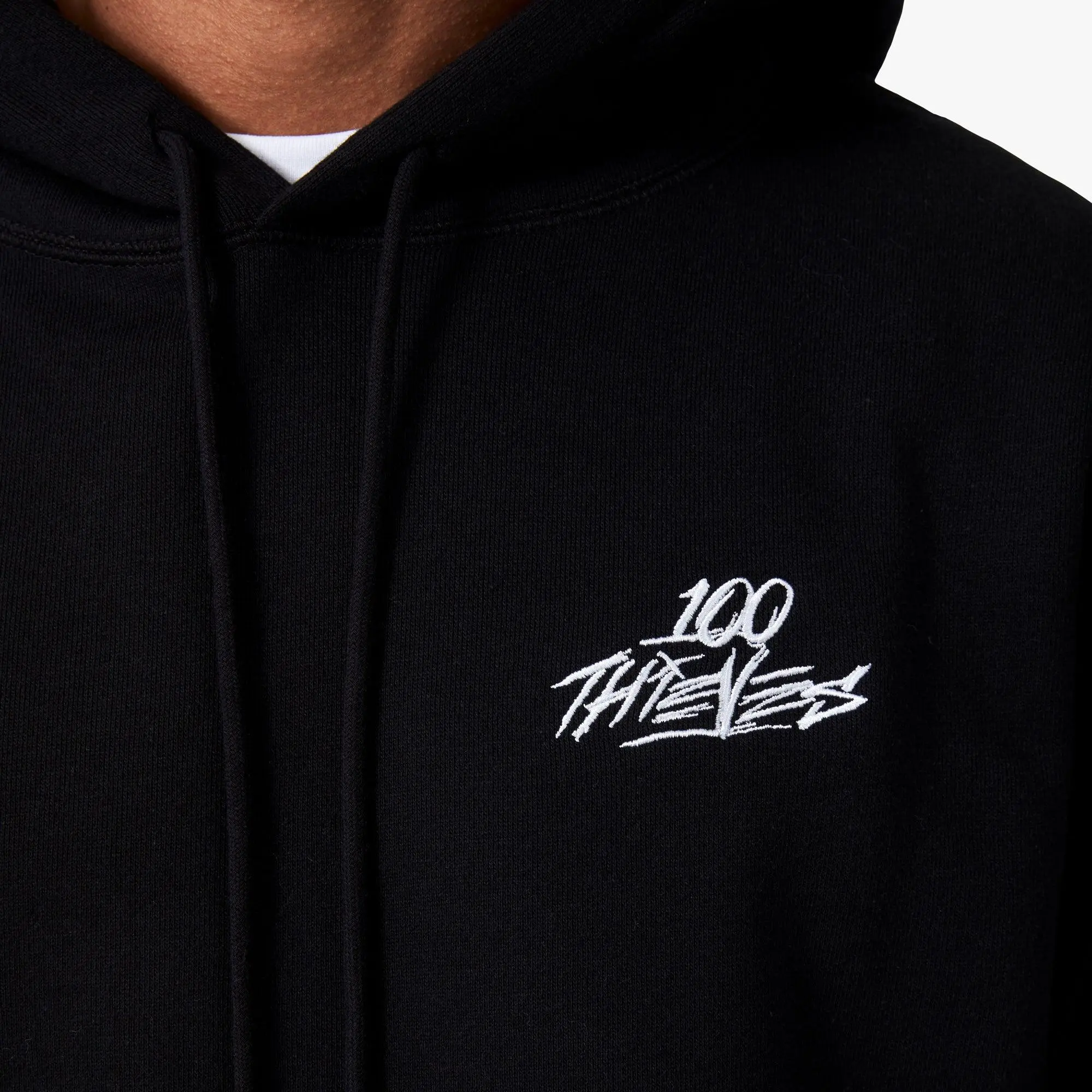 ·100 Thieves embroidery at chest.