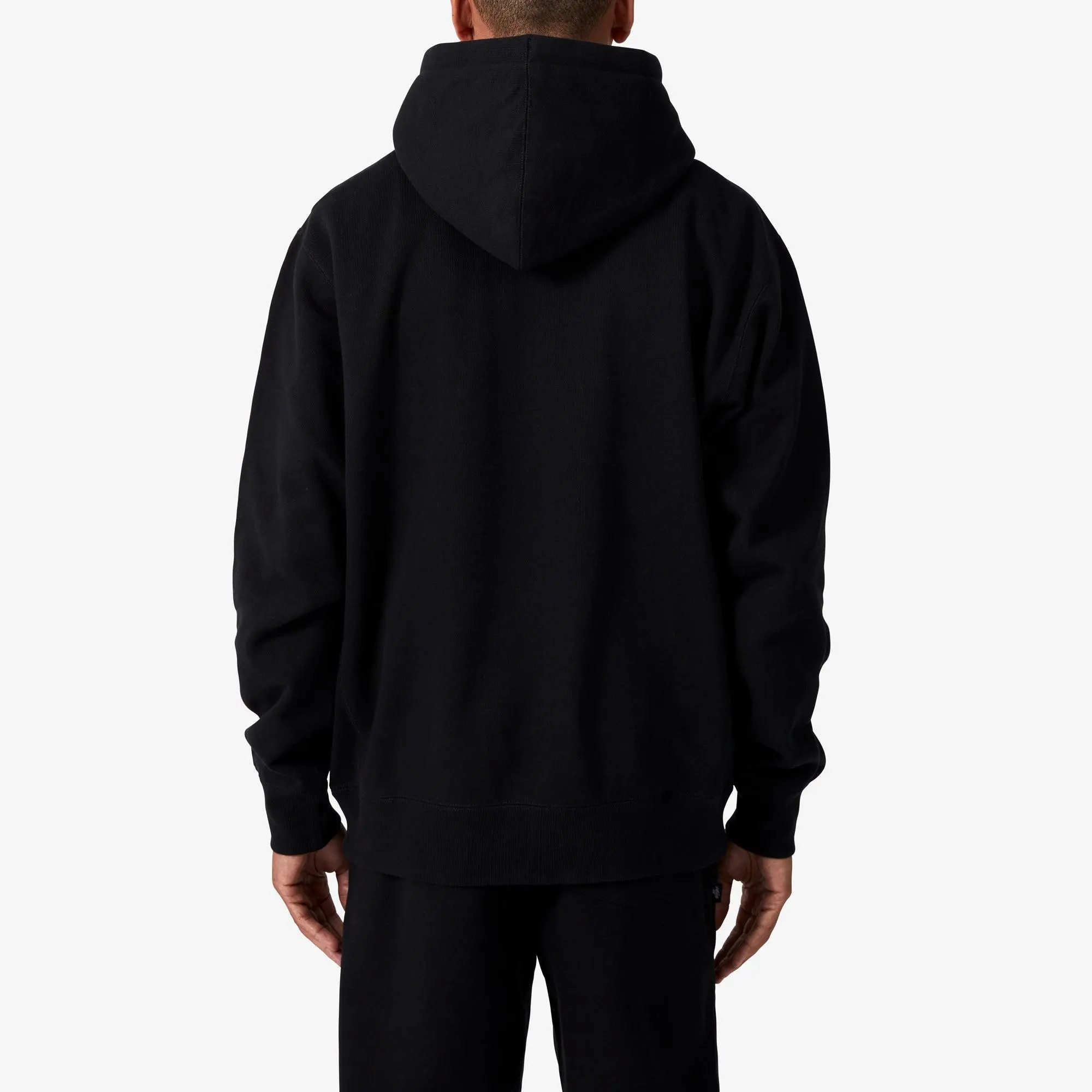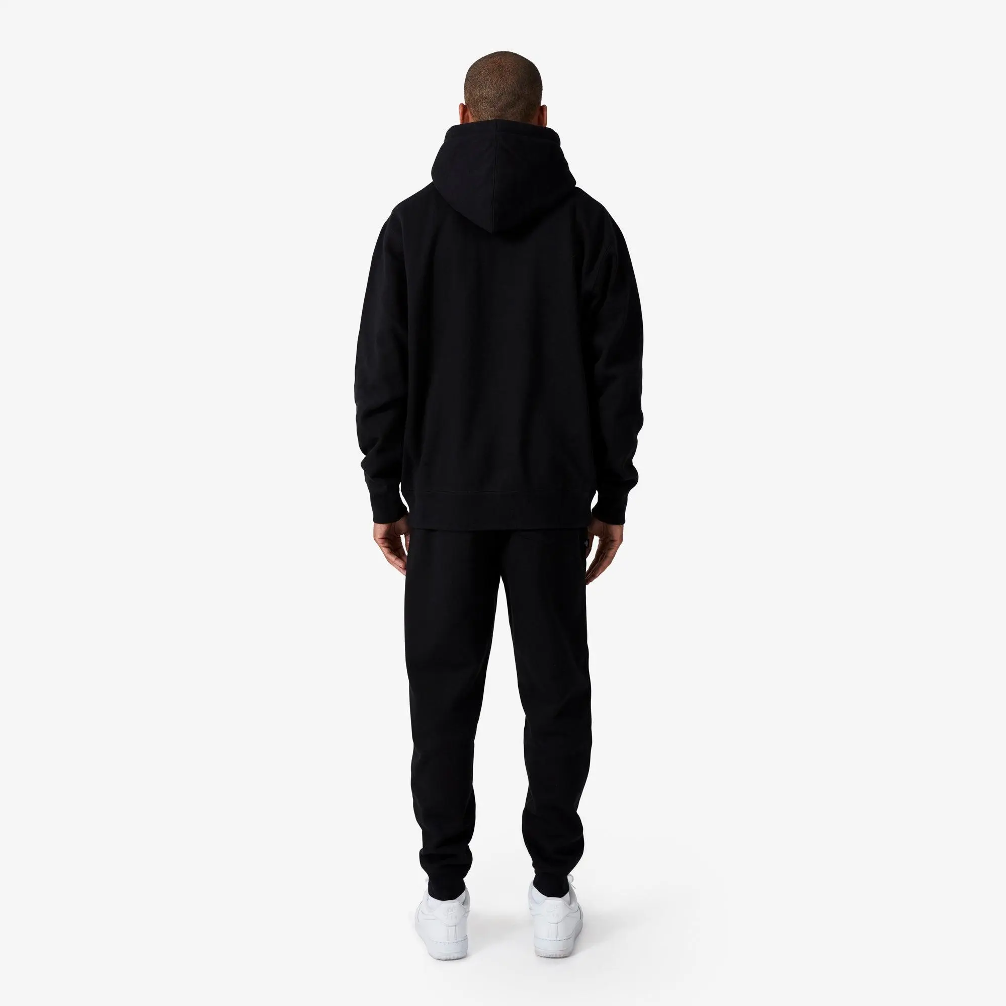 Custom cut and sewn hoodie in 450gsm heavyweight brushed back fleece. Double lined hood with custom 100 Thieves metal aglet tipped drawstring. Ribbed side panels for mobility and flatlock stitching on all seams for durability. 100 Thieves embroidery at chest. Flag woven label at side seam.
