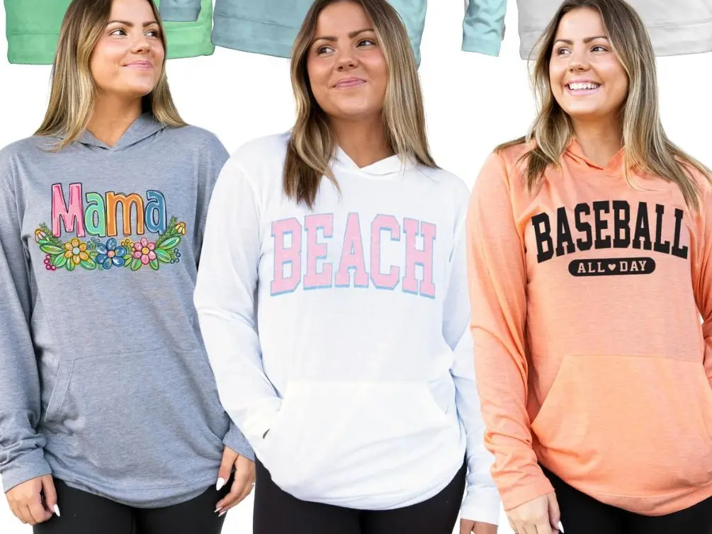 Ya’ll!!!!!!!! This is so great! The colors, transfer and fabric are outstanding. Perfect for today when it’s supposed to be a high of 57, but feels cooler in the morning. It’s a thinner softer material than a regular hoodie. Super soft long sleeve shirt with a hood! I LOVE IT SO MUCJ