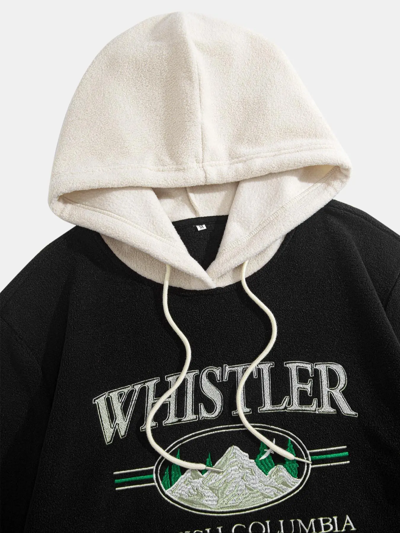 The hood of the sweater is more khaki color than cream color but it fits good and the material isn't bad.