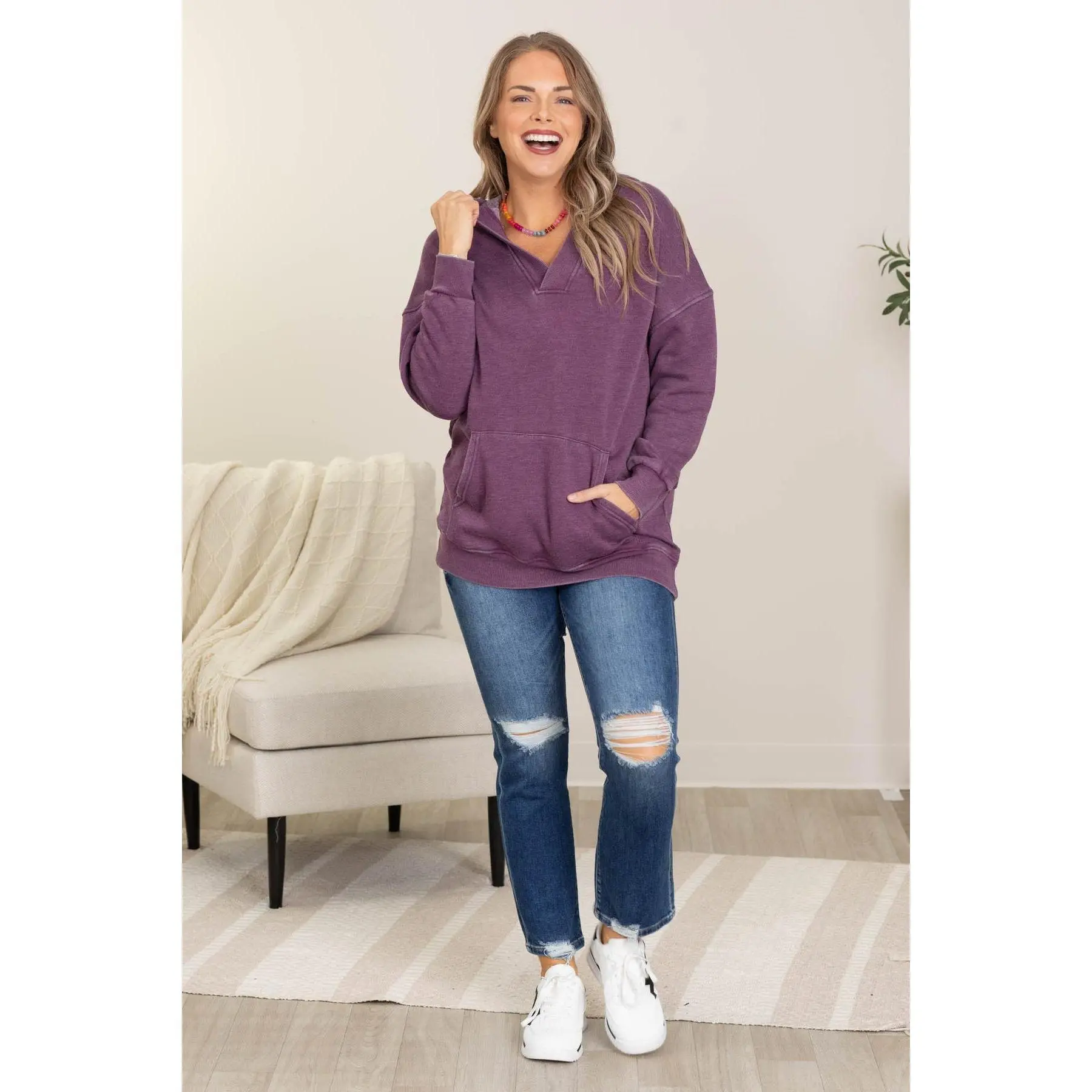 ·Classic Hoodie With A V-Neck Twist