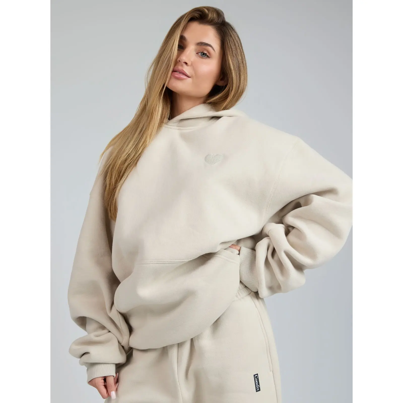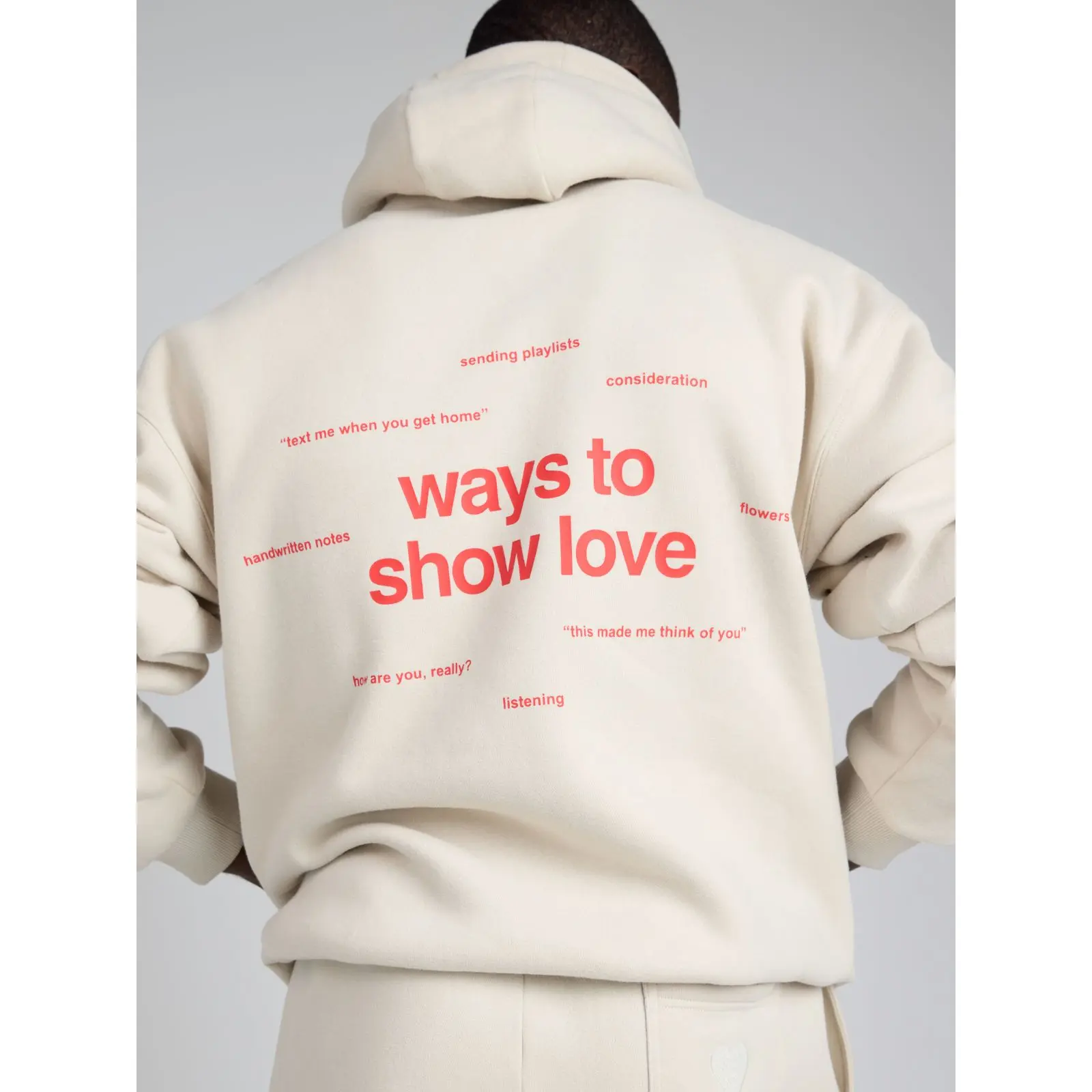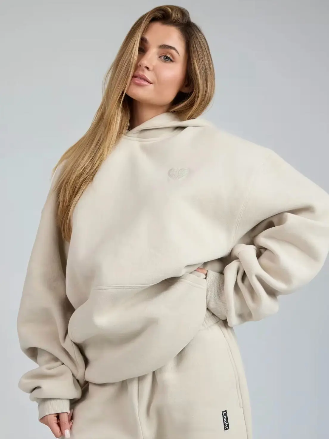 The hoodie is so pretty and it’s the oversized look that I love as well!! This one doesn’t shed like the other cloud one I have and the letters on the back just give the reassurance of love and care that I like. You can also size down if u want.