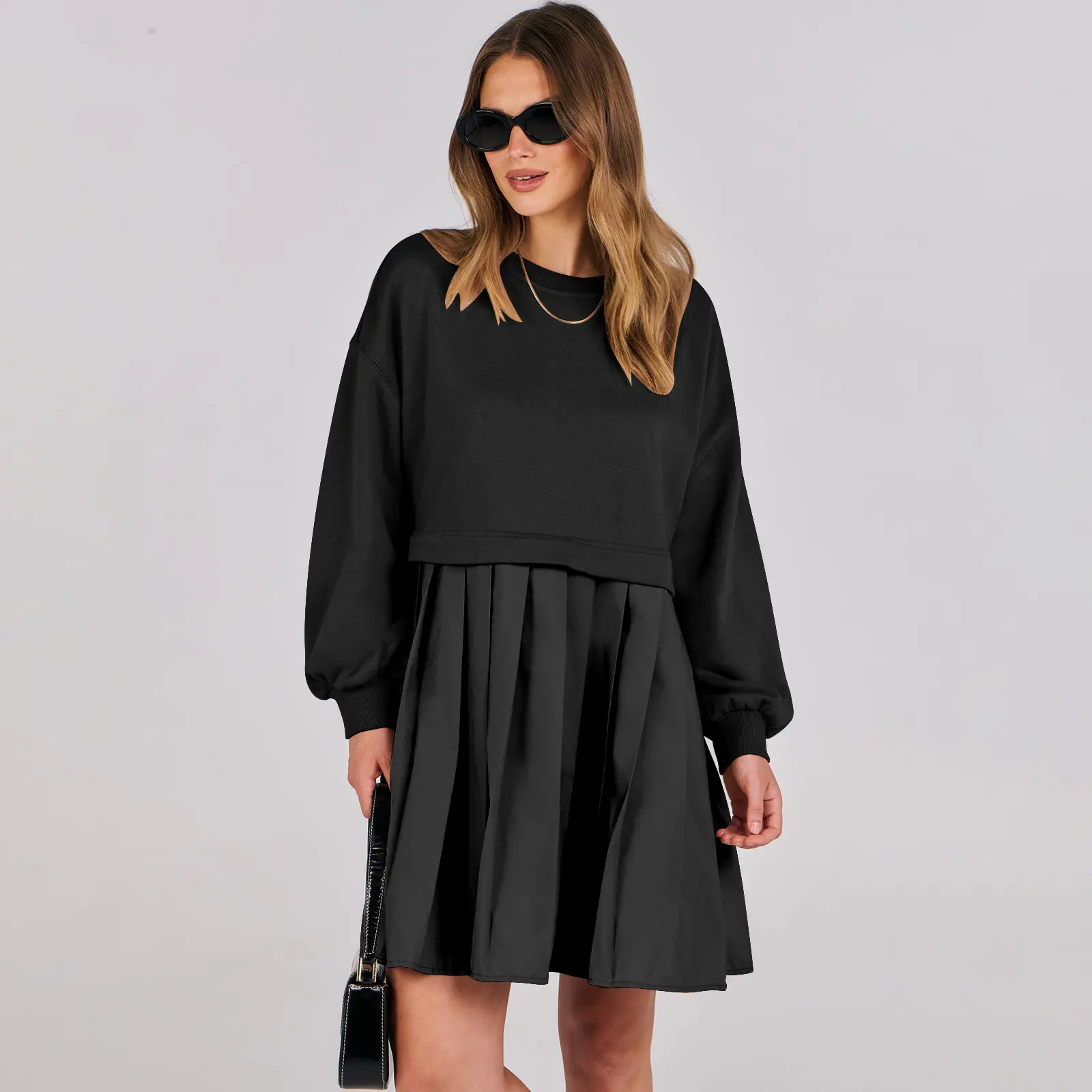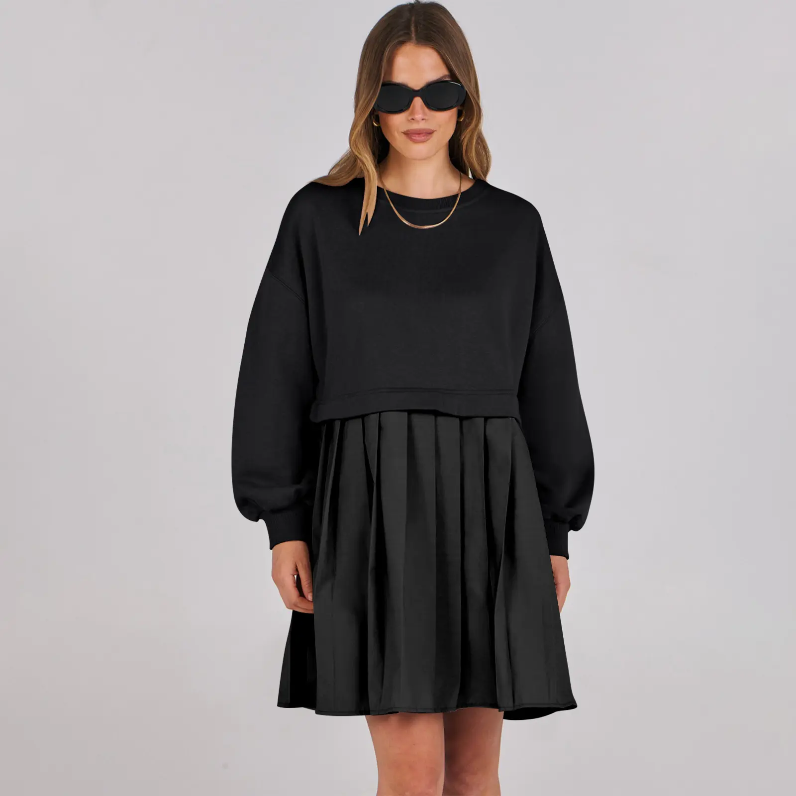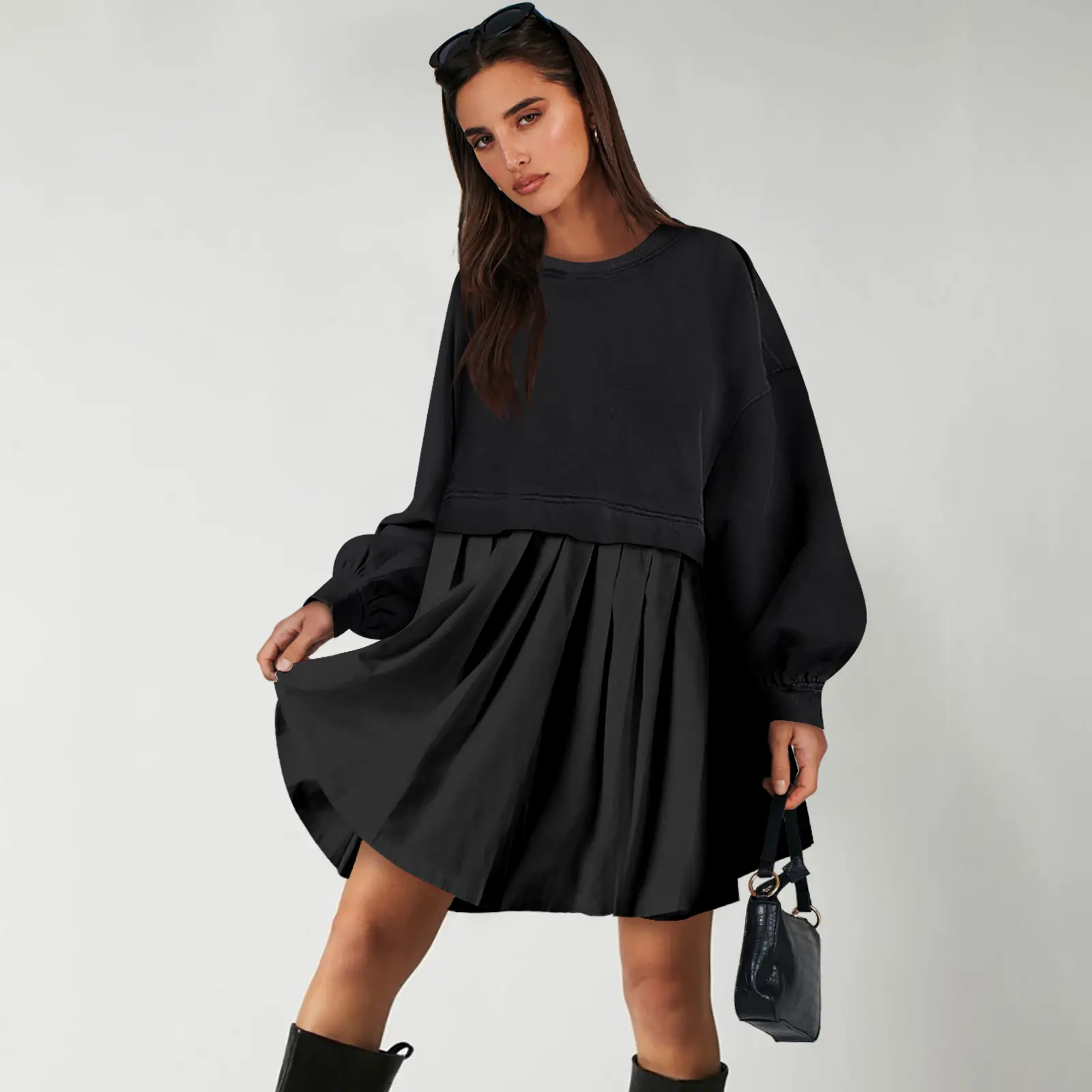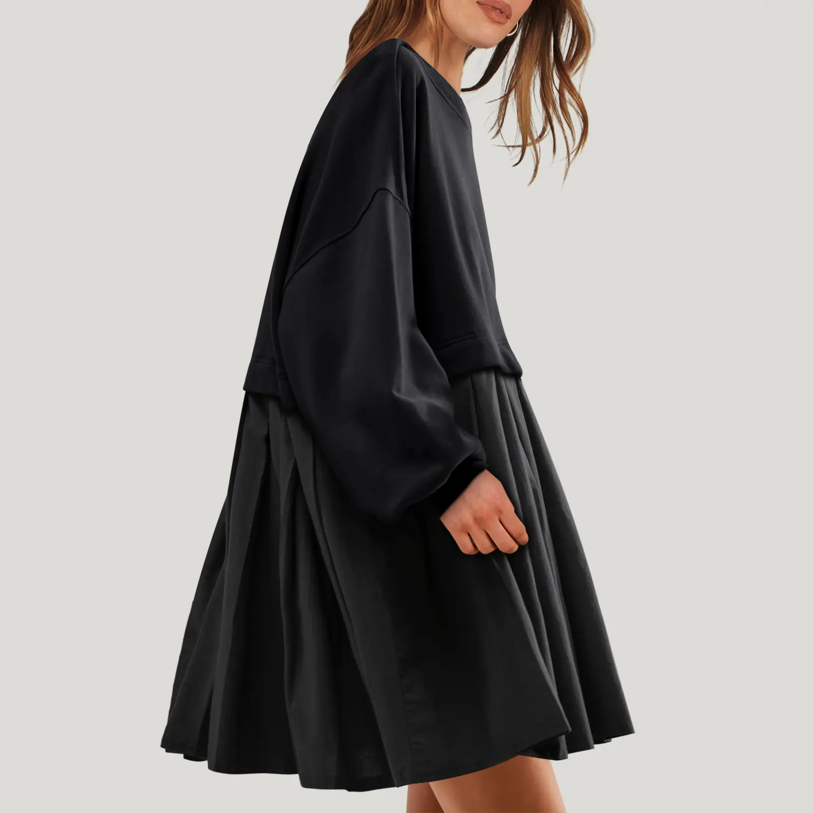 ·Design - this women sweatshirt dress features in crew neck, dropped shoulder, pleating at bottom, flowy hem, lantern sleeves for a stylish and relaxed fit style.