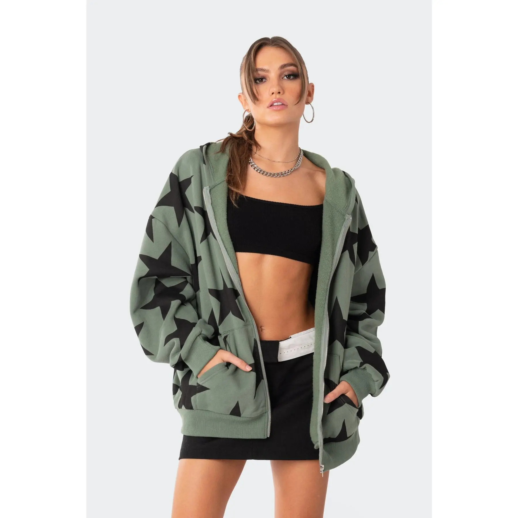 Replying to @lisadesantis1124 in love with this star print 😍 #oversizedhoodie #hoodies #zipuphoodie #starprint @Edikted