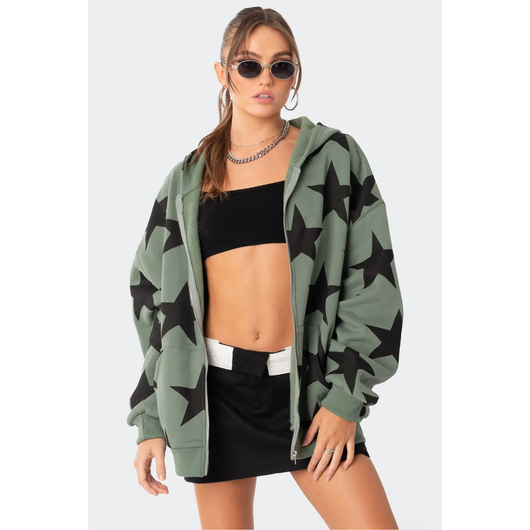 Where my emo glam chicks at? This hoodie is for us. #starprint #oversizedhoodie #zipuphoodie #emofashion #millennialfashion @Edikted #oversizedsweatshirt
