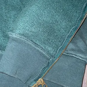 i wasn’t expecting this zip up to be super nice but wowww. the fabric is pretty thick and it’s the perfect washed blue shade. the hood is huge and the zipper is sturdy. i love the thick band, it makes it easy to fold up for slightly cropped looked. the sleeves sit at a perfect length. i got a 2XL.