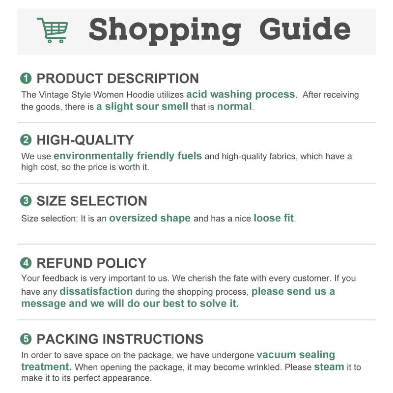 ·Reminder: ①The Vintage Style Hoodie utilizes acid washing process. After receiving the goods, there is a slight sour smell that is normal. Please understand. ②In order to save space on the package, we have undergone vacuum sealing treatment. When opening the package, it may become wrinkled. Please steam it to make it to its perfect appearance.