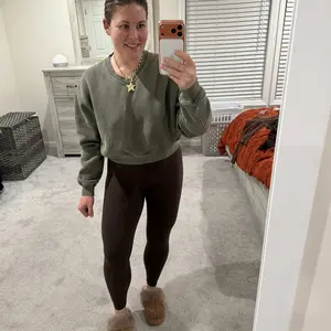 Love this! It's perfect for high-rise jeans and joggers. It's not cropped so much that my belly shows and it's on the thicker side so it will be great for the winter and fall months. I sized up to a medium but didn't really need to. Definitely need in more colors!