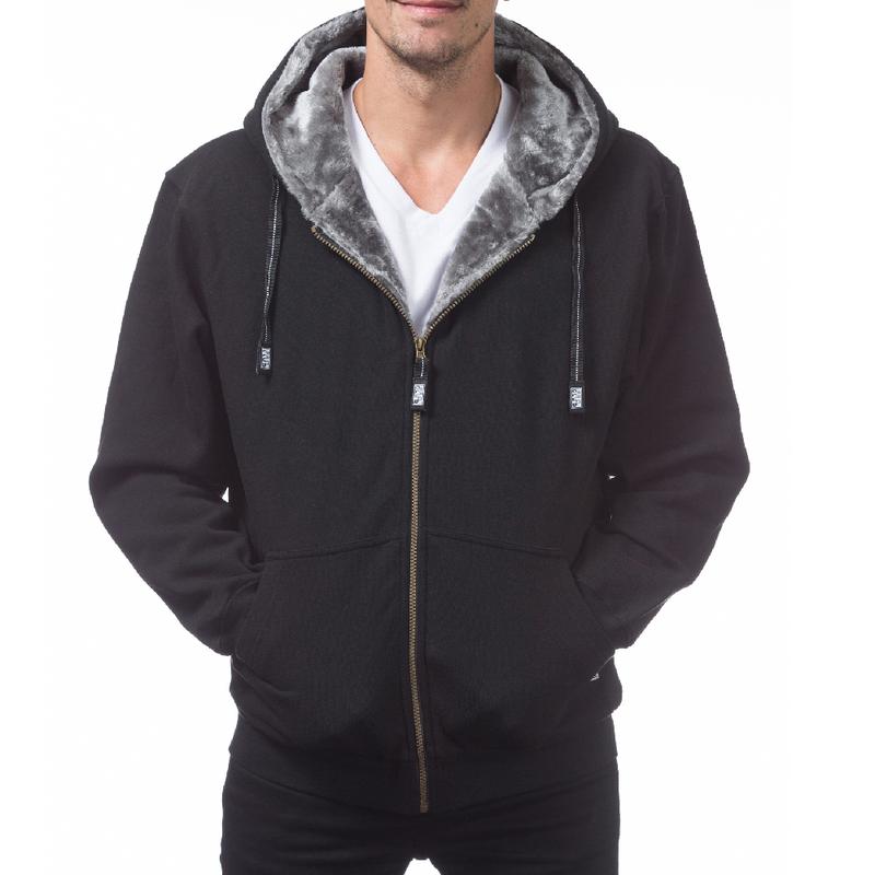 PROCLUB Men's Heavyweight Pile Jacket PRO CLUB Full Zipper Hoodie Casual Fur Jackets Relaxed Fit Warm Full Zip Jackets Hip Hop Harem