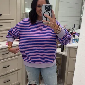 I was really impressed with this sweatshirt! It’s very comfortable, it is oversized and I bought a large, which is what I normally wear. All of our soccer team moms bought them because our sons uniforms are red and white stripes. I would totally buy another one of these and a different color.