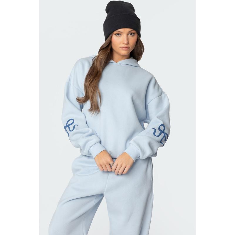 I bought this for my 13 year old daughter for Christmas and im super jealous lol..its awesome quality, the bows are a little puffy which is so nice, it makes the whole hoodie pop! I received it 2 days after ordering. I think im addicted to edikted and will be ordering a lot more stuff..This is exactly the quality and graphics you want when you order hoodies. I can't stand when you order something, and its that shiny cheapy material, this is amazing quality. Their store has so many cool products and I cant wait to get more. Thank you, my daughter is gonna flip out when she opens this one!!
