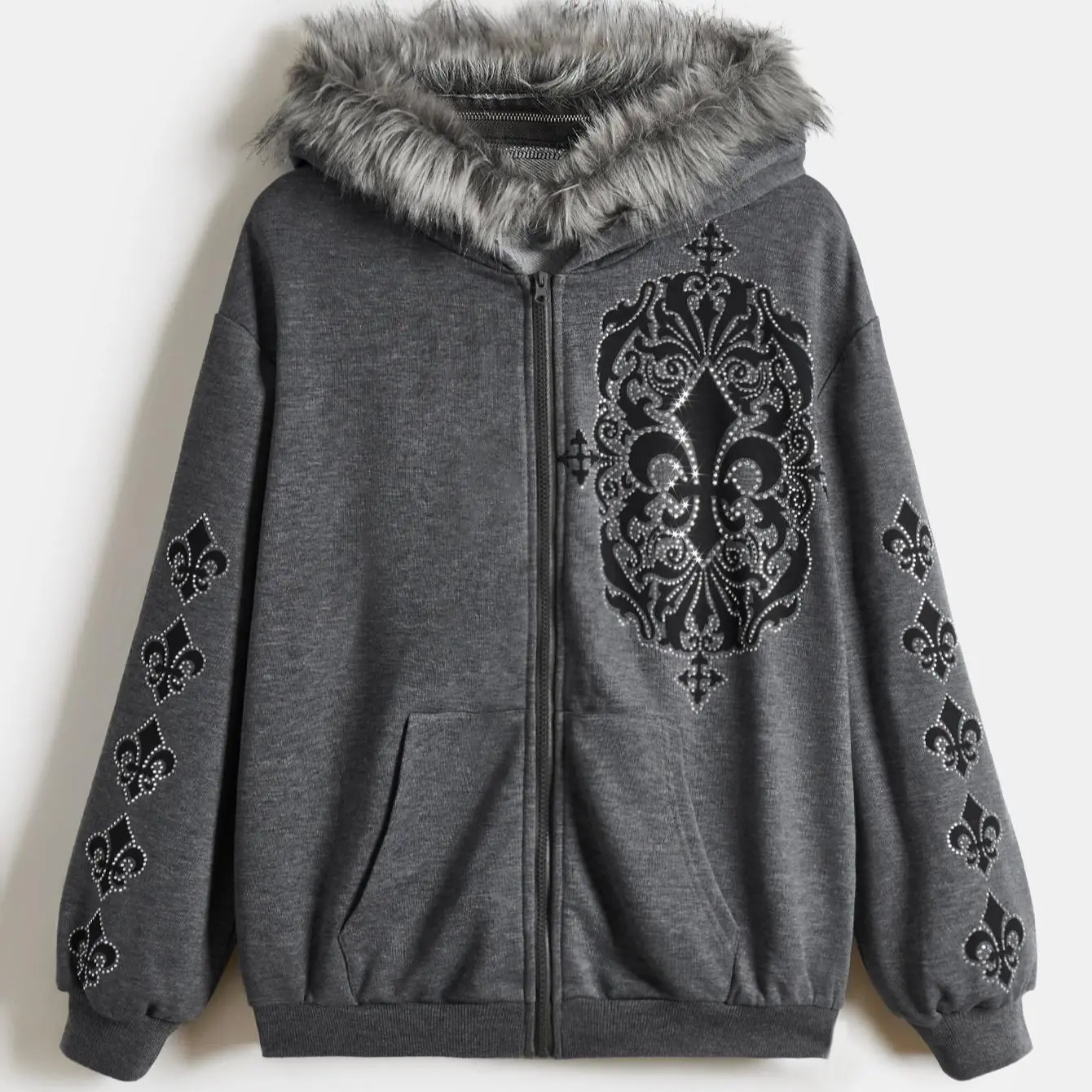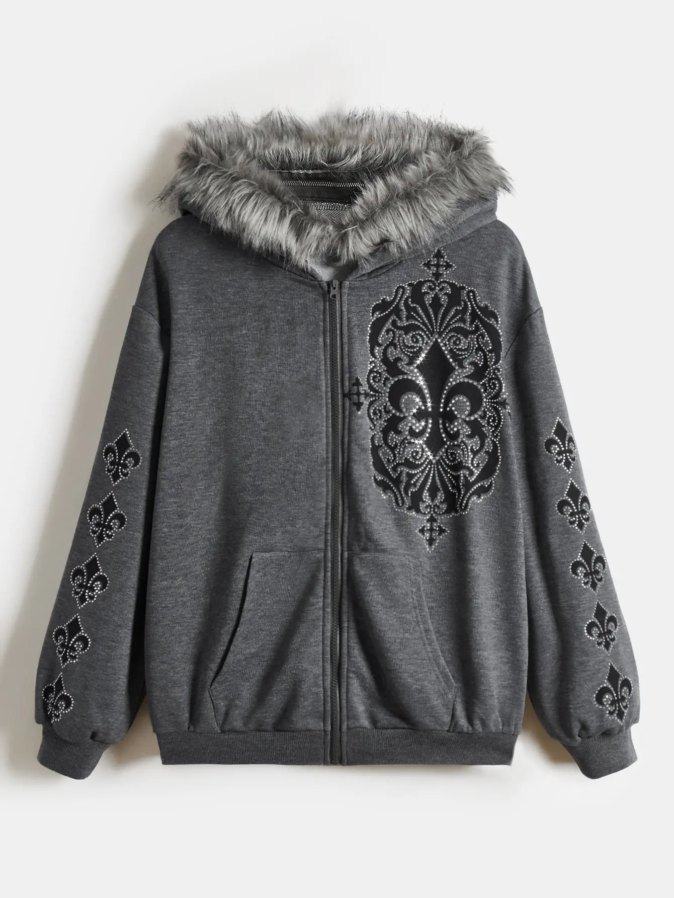 Quality was very poor on the inside and out, gems come off easily, and the fur doesn’t look right overall a cheap zip-up for what I paid for. Don’t recommend spending your money on this.