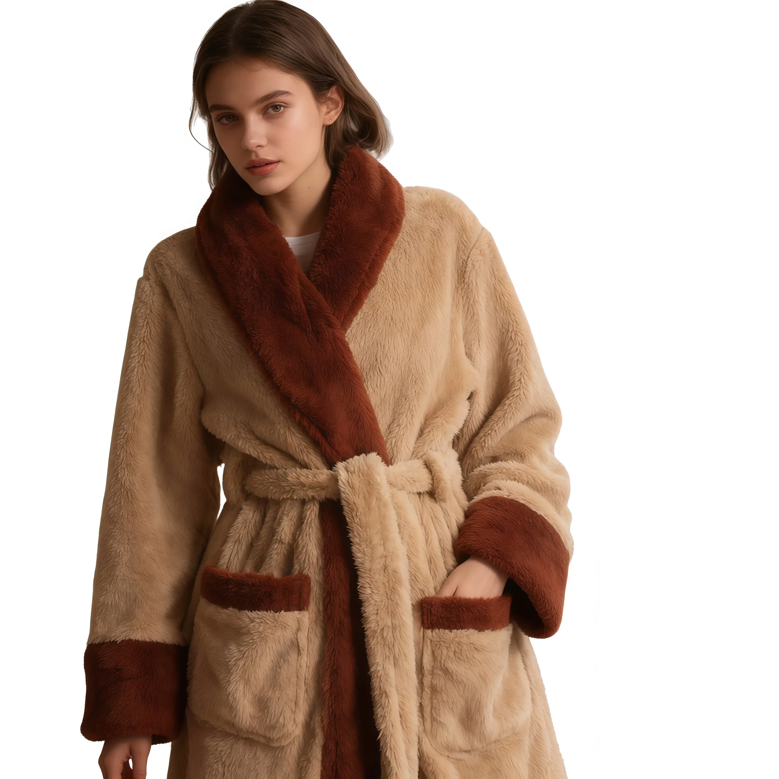 🧵 Soft and Cozy 🧵 The robe is lined with plush material, ensuring a soft and cozy experience. The lining provides warmth and comfort, making it ideal for lounging at home. Enjoy the comfort of plush material in every wear.