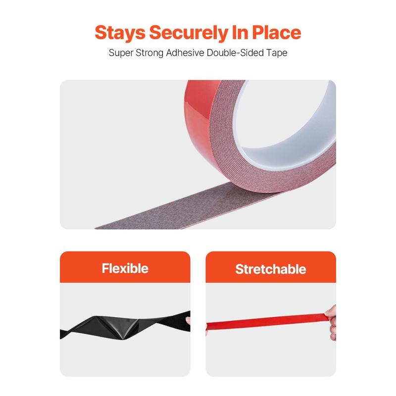 • Strong Adhesion: The hook and loop tape comes with a high-strength adhesive backing, sticking securely to a variety of surfaces. Plus, the waterproof double-sided tape, made from acrylic foam, has a unique adhesive formula that holds firm, even in damp conditions.