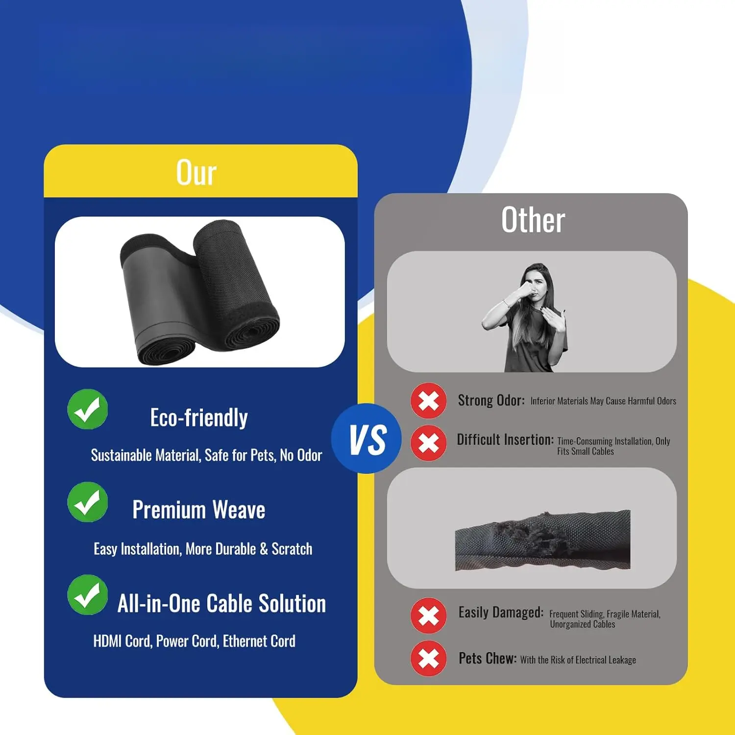 【】Unlike rigid plastic tubes, our soft sleeve won’t scratch floors or harm curious pets. Made from material—protect your cables and the planet!