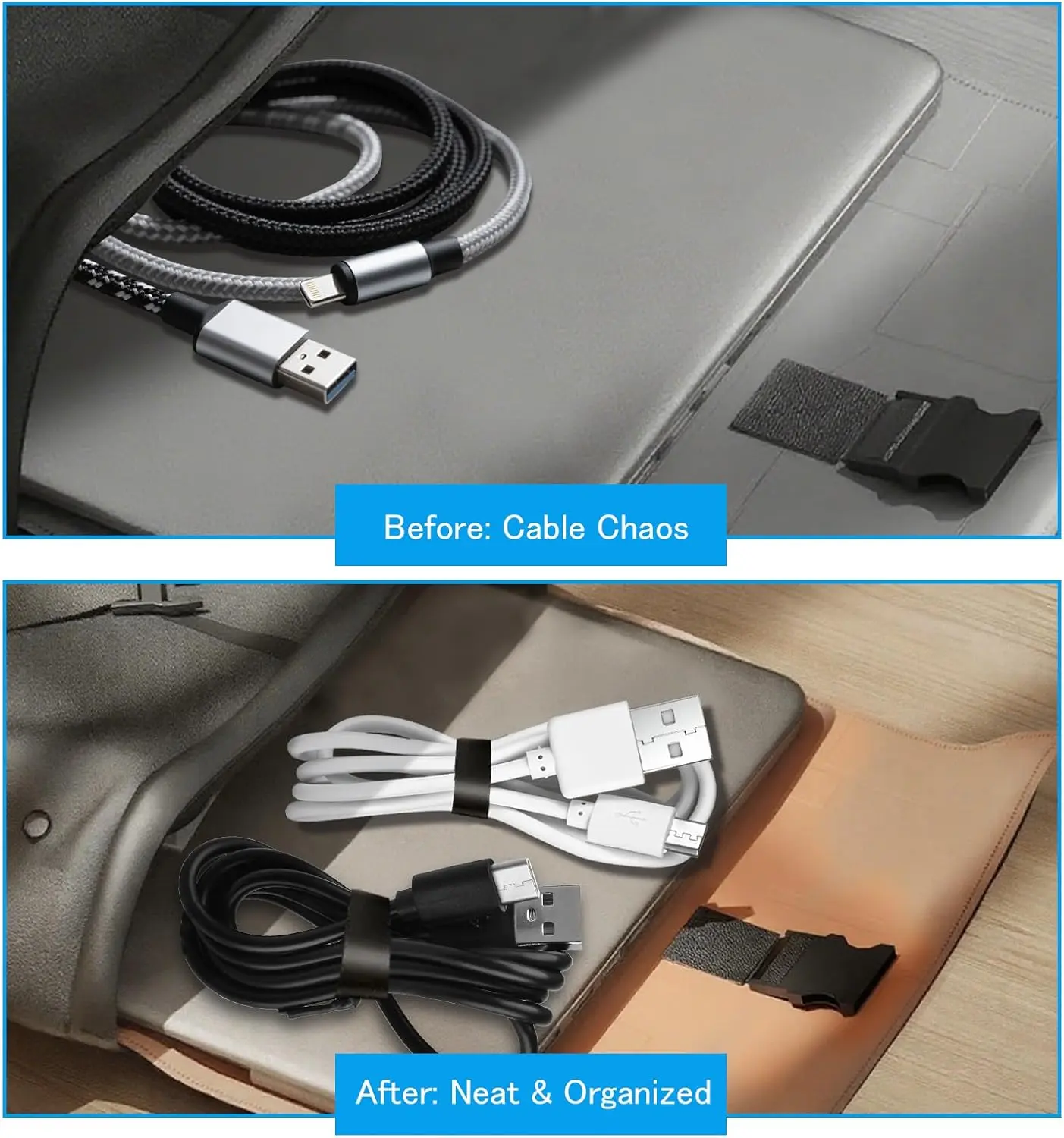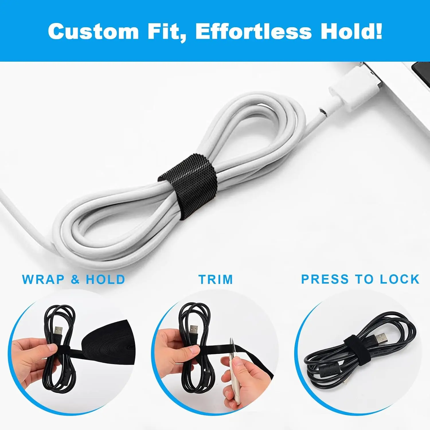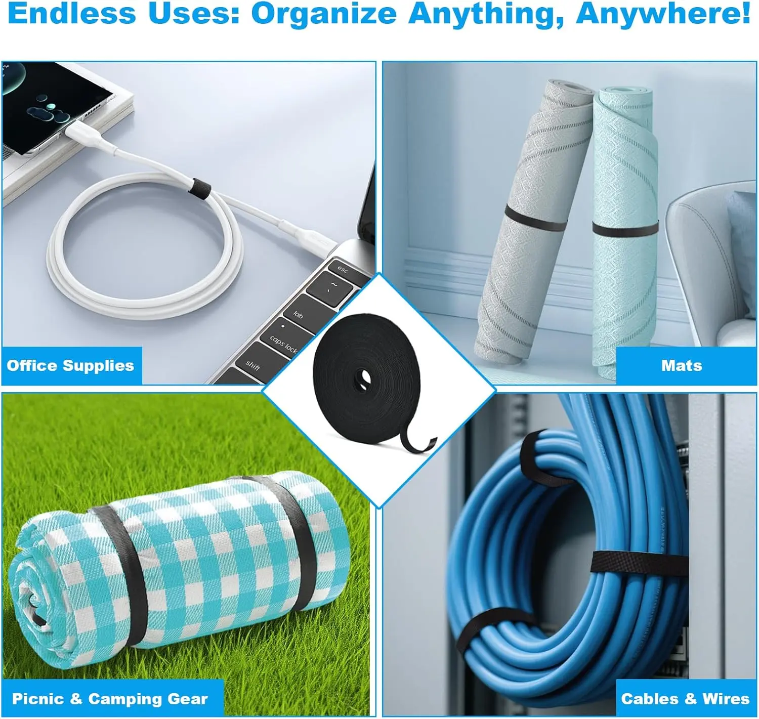 ·Strong Hooks and Loops: Both sides feature strong hooks and loops. Wrap around items like cables or tools. It secures firmly without adhesive, glue, or sticky residue. Pure mechanical grip.