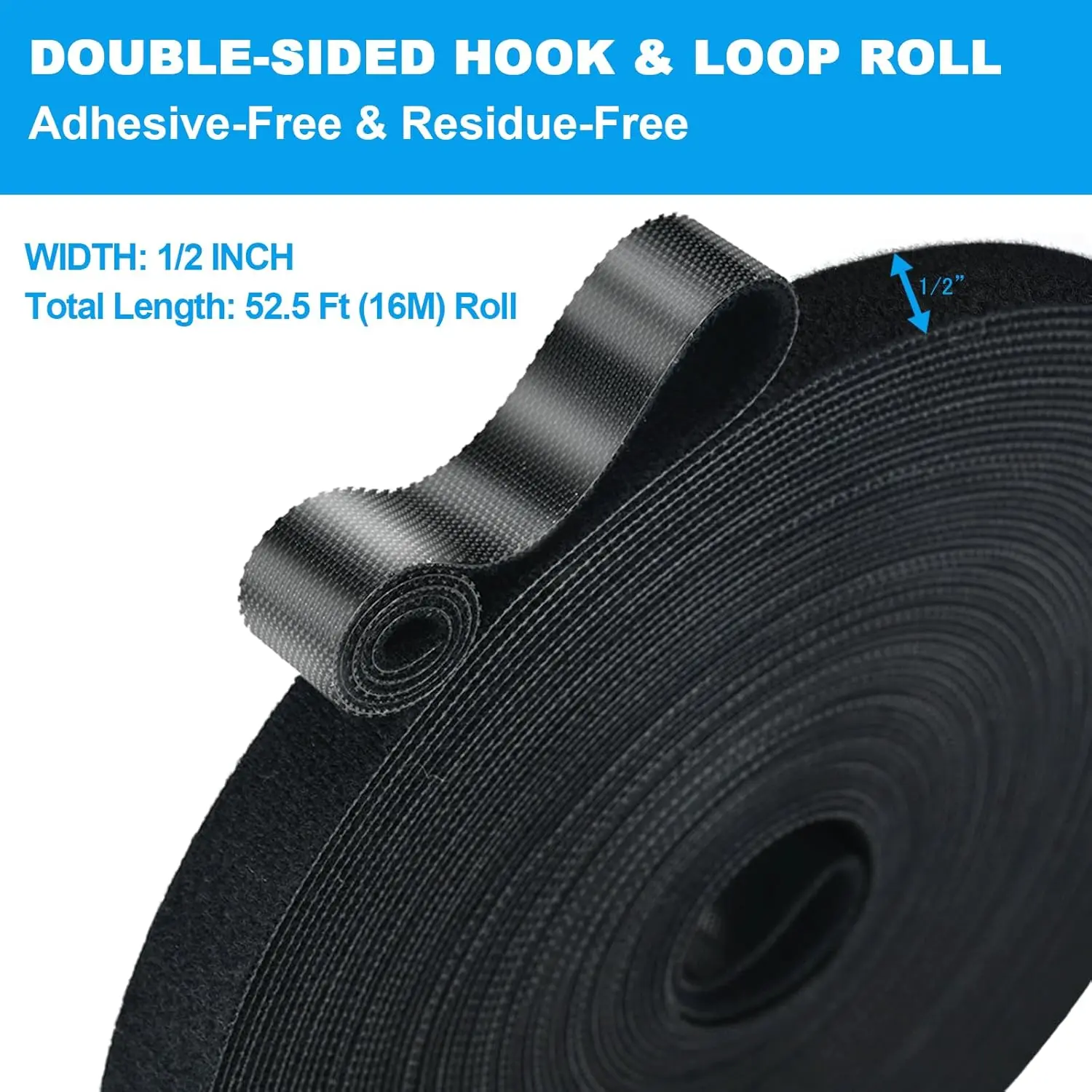 ·Hook and Loop Roll: This 52.5 Ft continuous roll is perfect for home, office, and DIY organizing. It reduces waste and is cost-effective. Ideal for most common tasks.