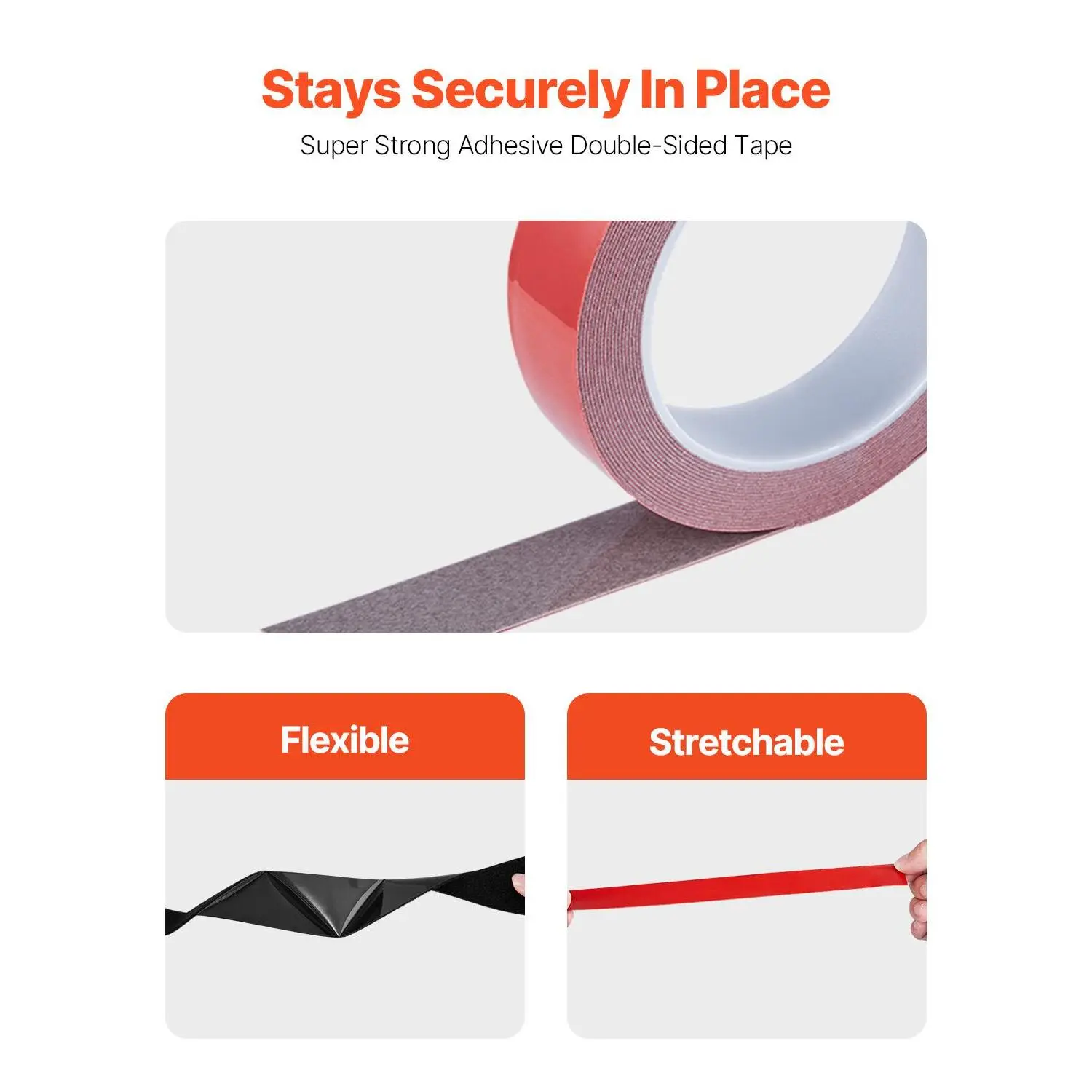 • Strong Adhesion: The hook and loop tape comes with a high-strength adhesive backing, sticking securely to a variety of surfaces. Plus, the waterproof double-sided tape, made from acrylic foam, has a unique adhesive formula that holds firm, even in damp conditions.