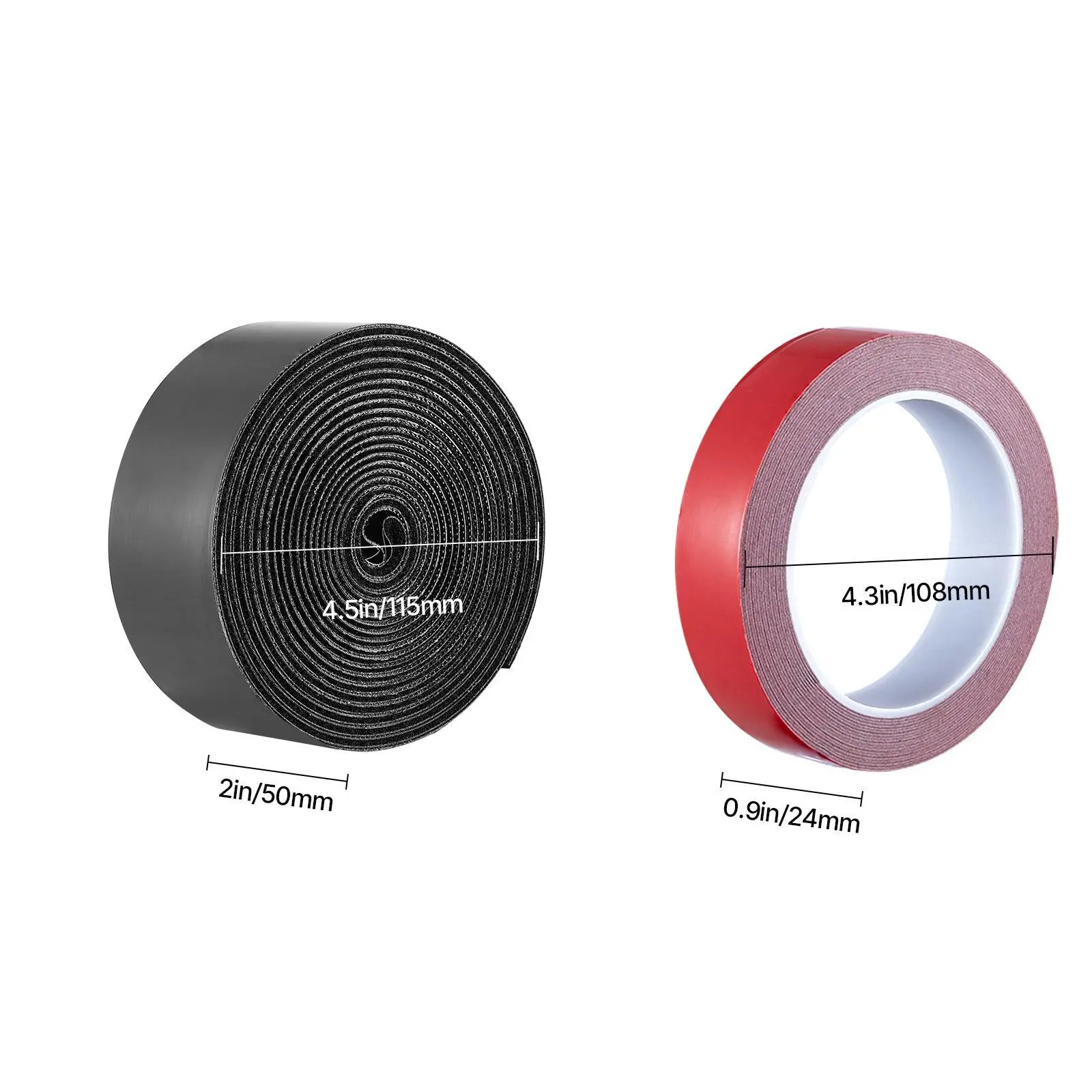 • Hook and Loop Tape Combo: This set includes one roll of 15ft (457cm) long, 2in (5.08cm) wide heavy-duty hook and loop tape, and one roll of 16.4ft (500cm) long, 0.94in (2.38cm) wide double-sided tape. It’s just what you need for hanging pictures, organizing kitchen tools, or fixing up your car interior. Perfect for when you want something that holds well but can also be easily removed!