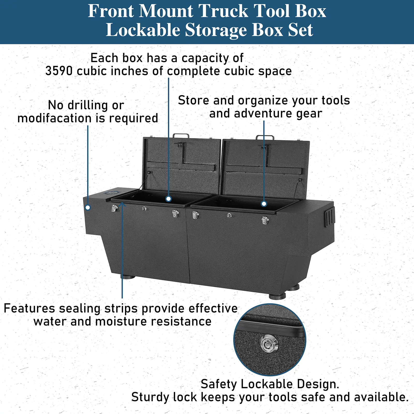 ·Spacious dual box design. The set includes two robust storage boxes, each with a generous 3,590 cubic inches of interior complete cubic space. That’s ample room to store recovery gear, hand tools, tie-downs, and more.