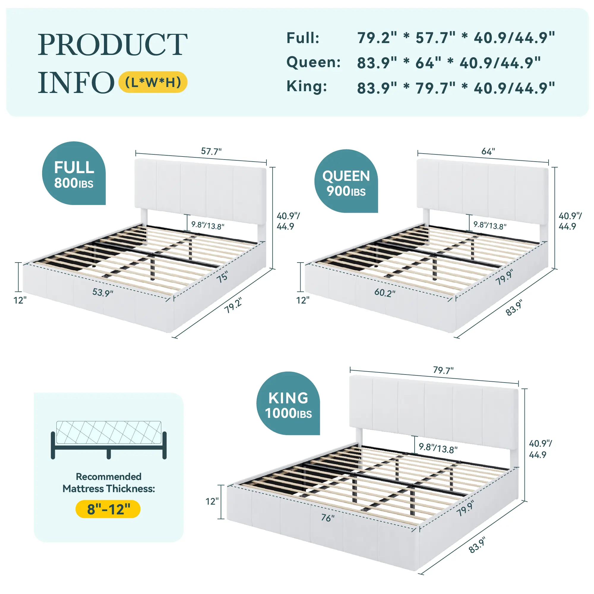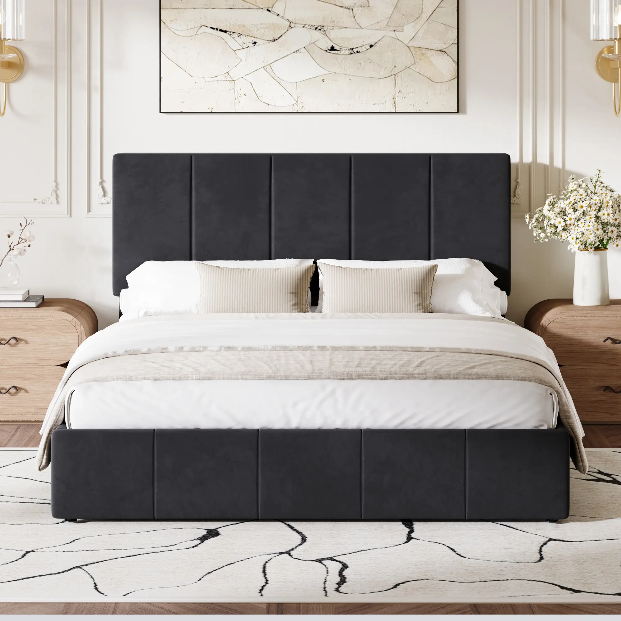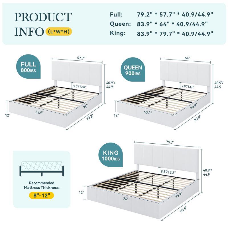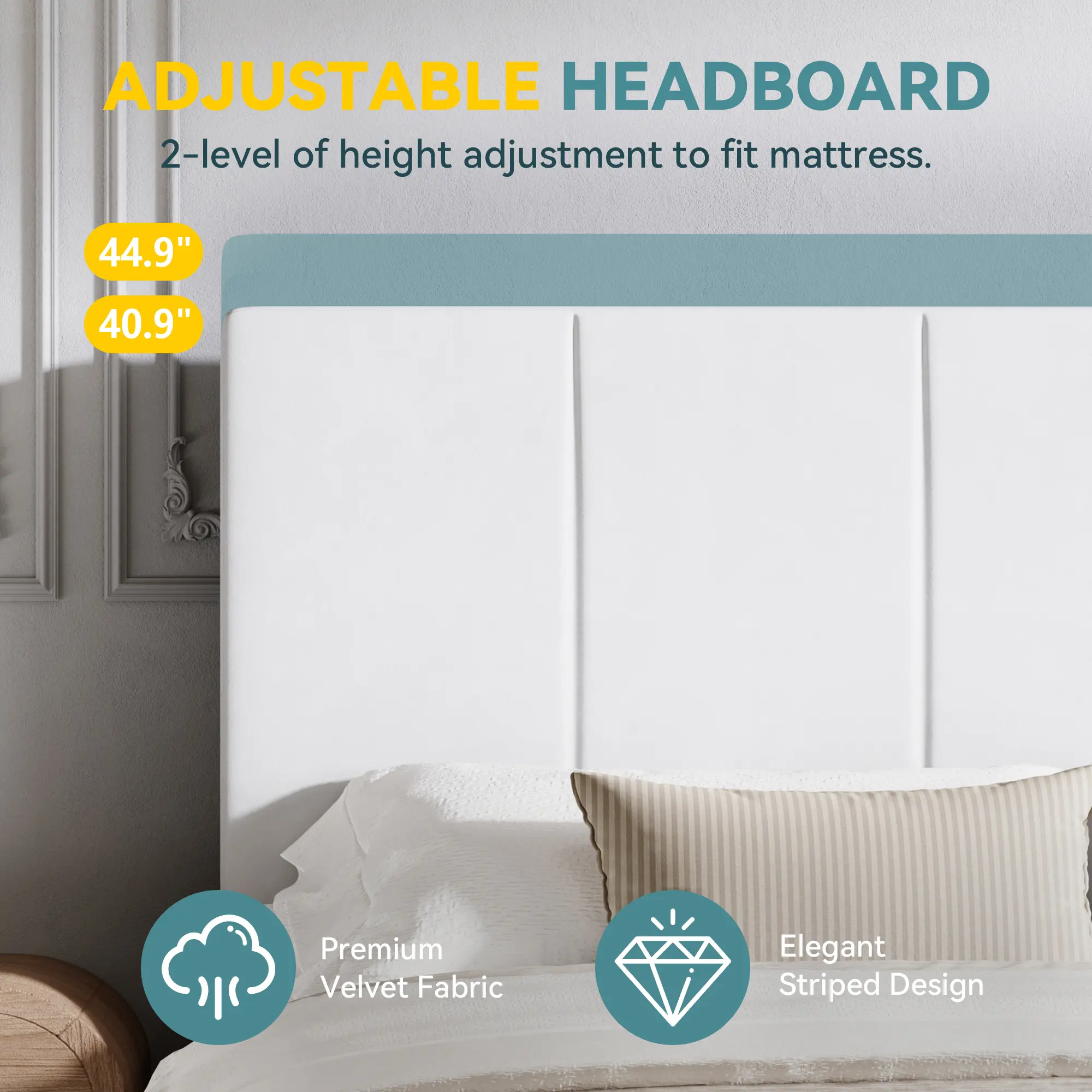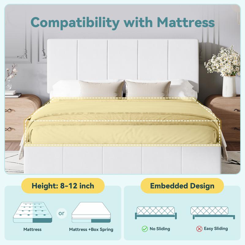 ·Two-Height Adjustable Headboard: Designed to fit mattresses of varying thicknesses, the vertical channel-tufted headboard offers two fixed height options: 40.9 inches and 44.9 inches. This elegant design adds a touch of sophistication to any bedroom decor.