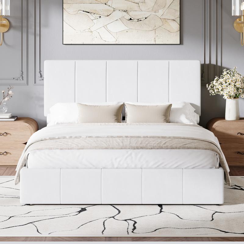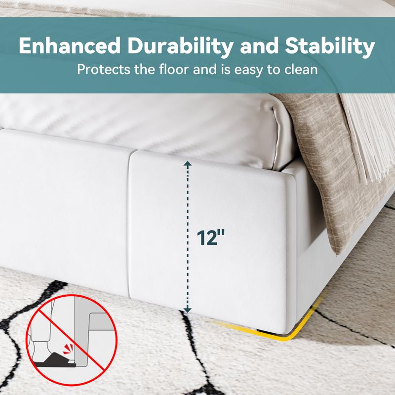 ·Thoughtful Enclosed Base Design: Featuring a fully enclosed bottom structure, this bed frame eliminates under-bed clutter and tripping hazards. It provides sturdy support while protecting your toes, helping maintain a tidy and safe bedroom environment.